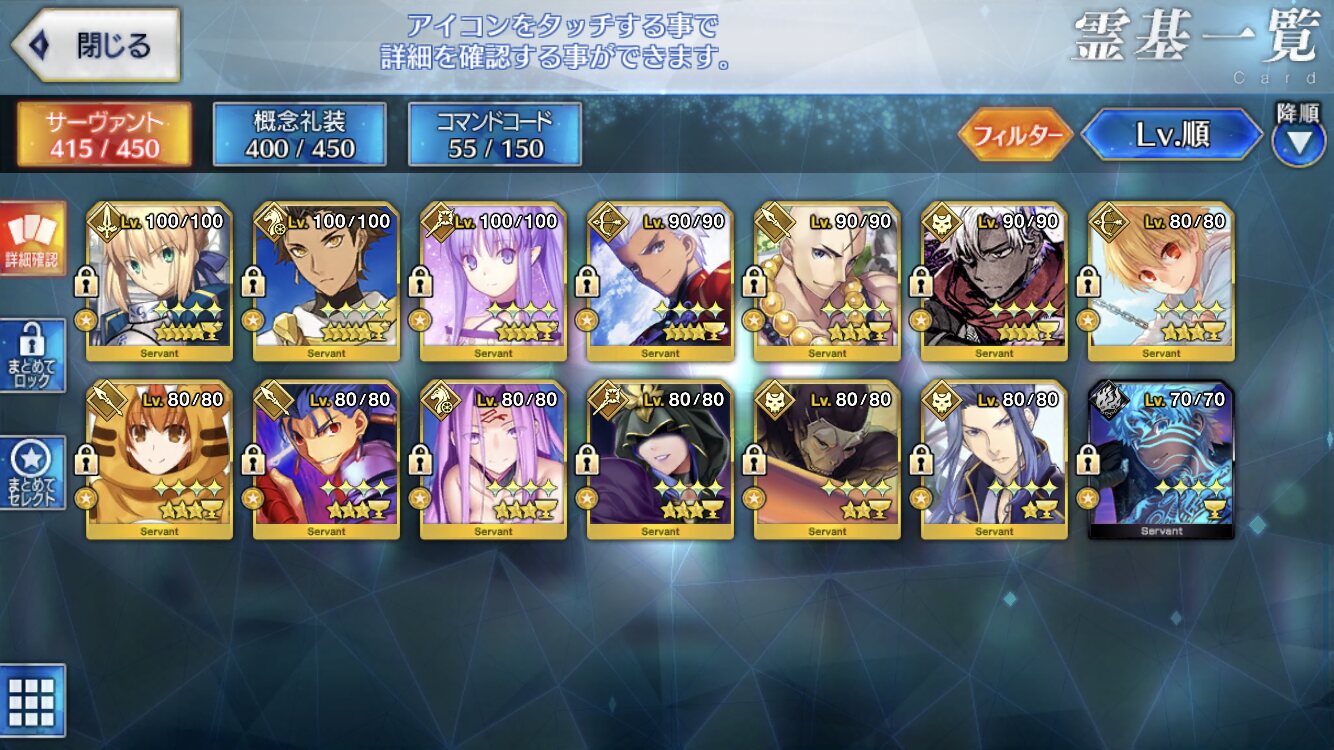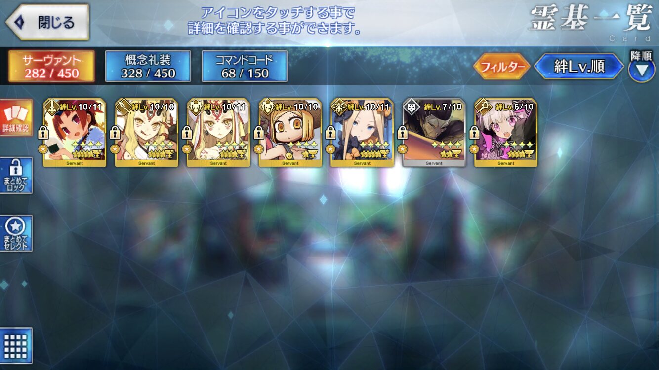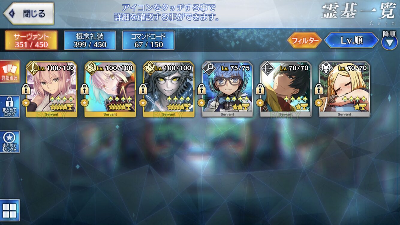 星3はフレンドに推しの人が居ないとフレサポではみかけないし、設定や育成状況によっては最終再臨見たことないサーヴァントも居るよね。