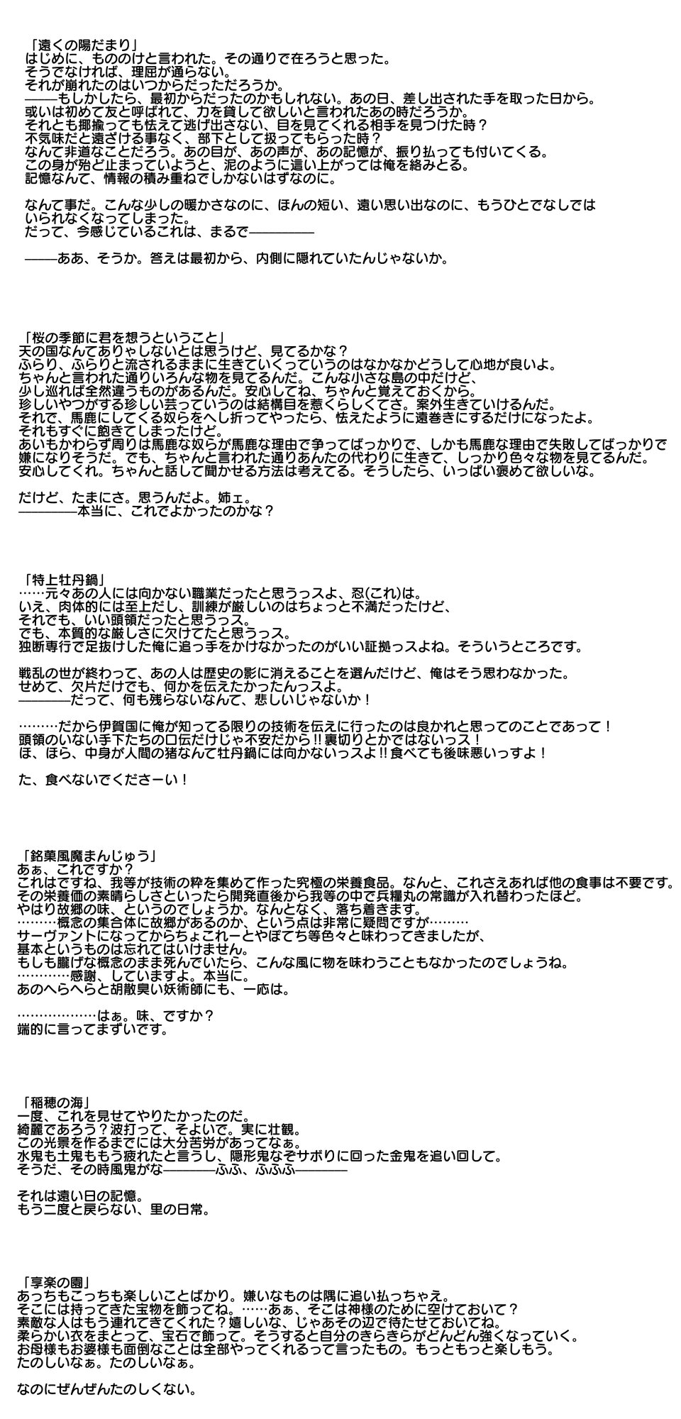 「こちらこそよろしく、マスター。願わくば、この出会いが良きものでありますように。」以上です。我ながら話が長い……。