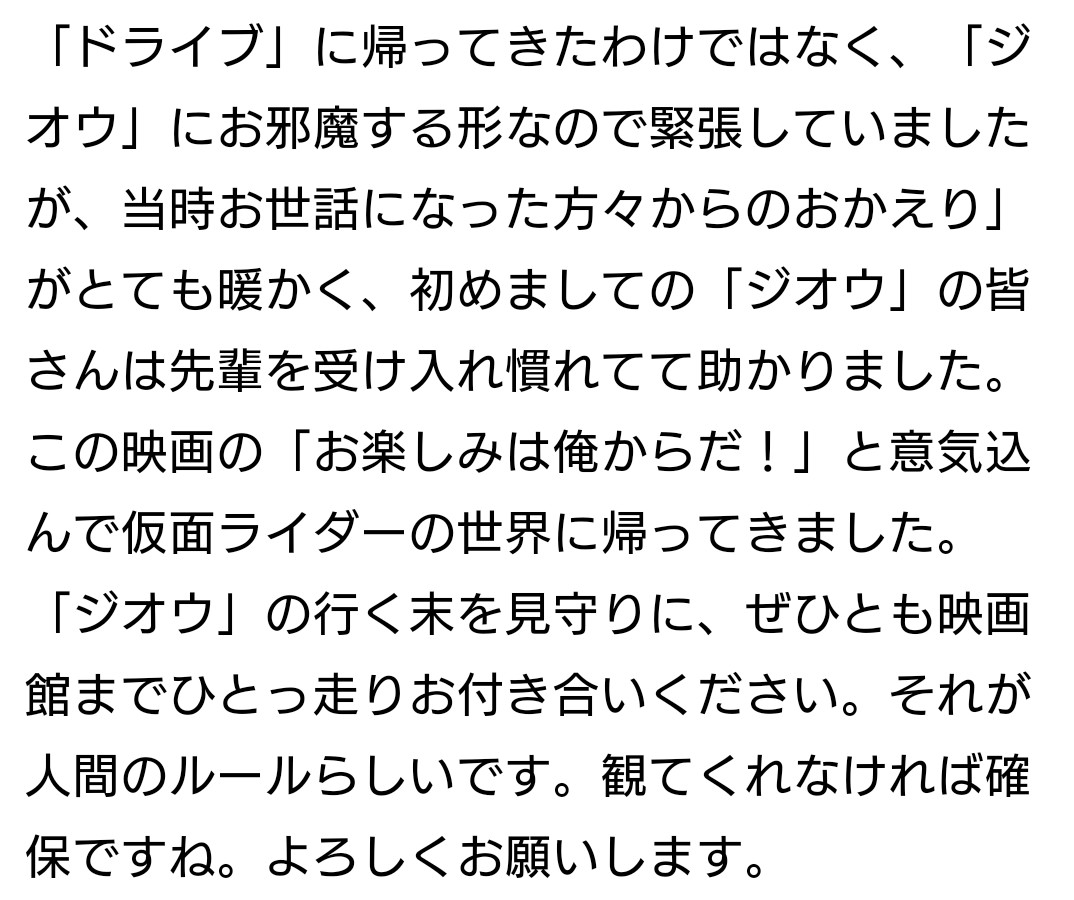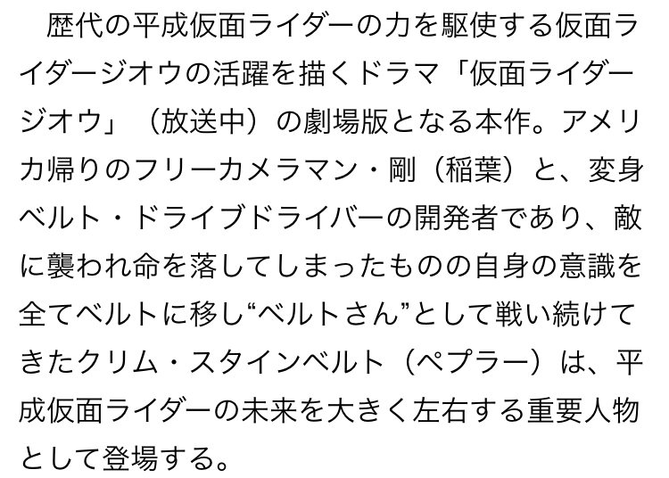 クウガはまぁしゃあないというか、むしろクウガの設定や小ネタ拾ったりリスペクトには満ちてたよ>>878