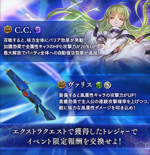 ちょっとトロワ鬼畜過ぎる(でも最後まで戦い抜いてるノインさん)グラブルギアスコラボ、ルルーシュ、カレン、スザクの属性がそれぞれ闇、火、風で確定したみたいだね。