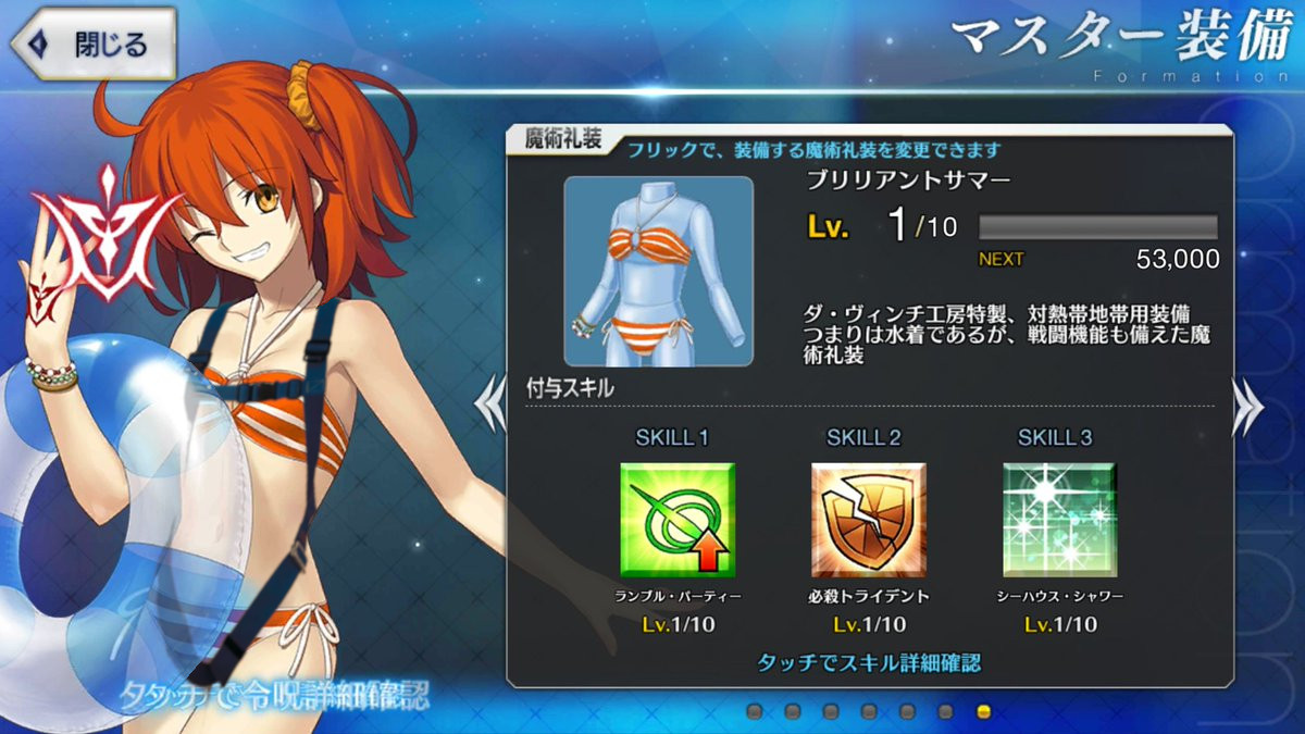 水着ぐだ子が明らかに本来の目的じゃないハーネスをつけて自ら拘束した上に、スキルが『ラン○○パーティー』だと!?