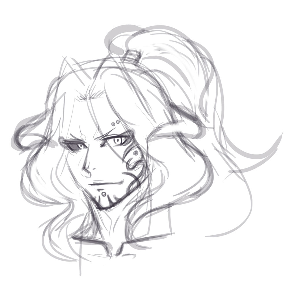 【外見的特徴】銀髪青瞳で色黒の肌をした筋肉盛り盛りのマッチョマン。顔に傷があり少し髭も生やしている。