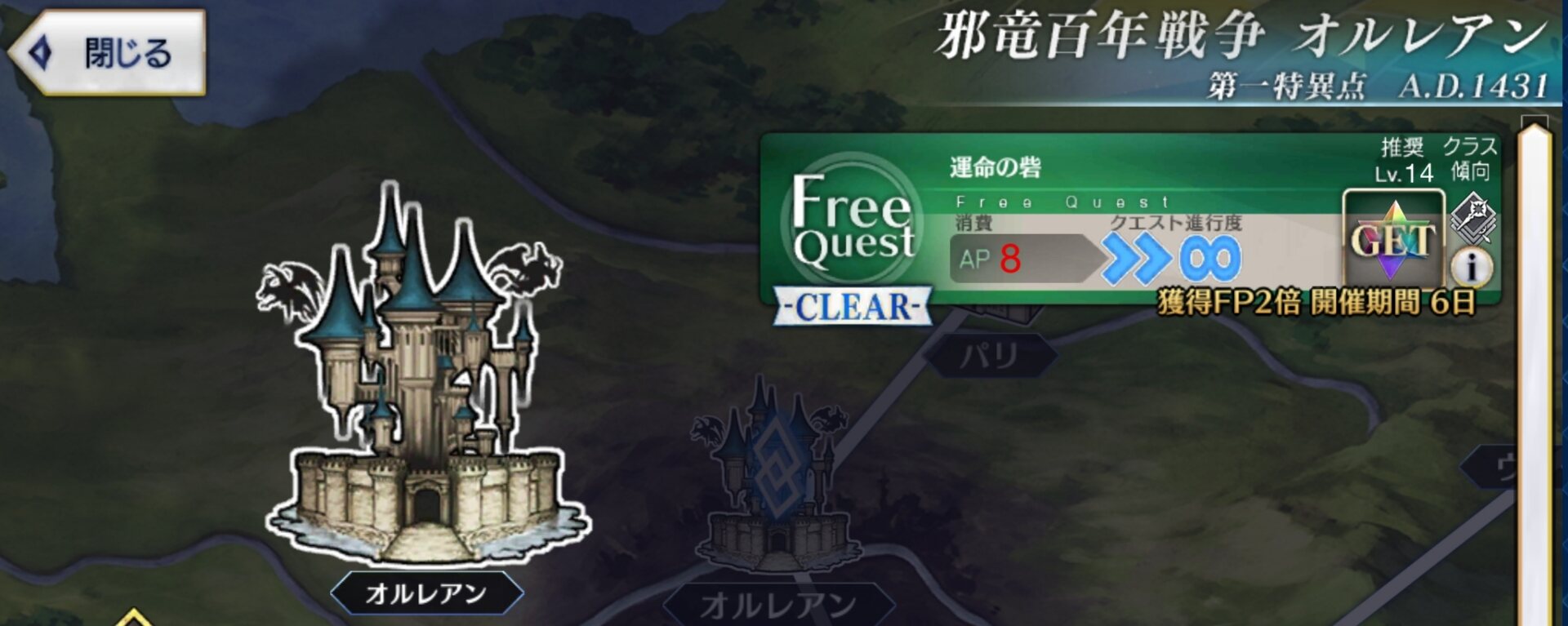 幸運A+の鯖1~2体出現する騎の修練場上級が