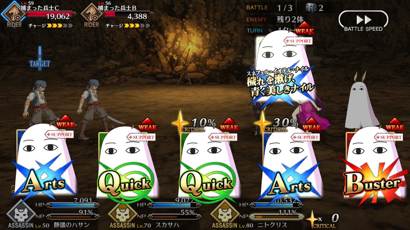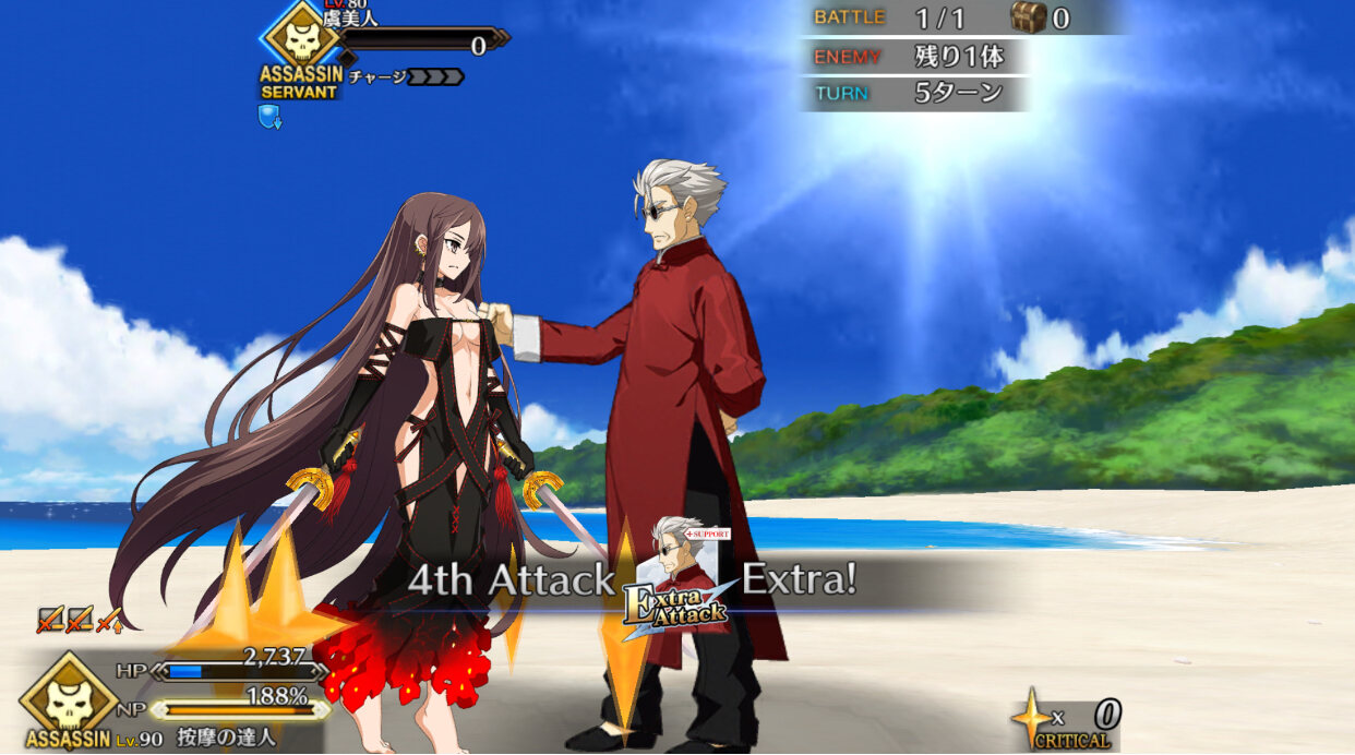 エウリュアレは特攻さえ入れば女性特攻メイヴや両特攻紅閻魔に並ぶ程度の火力だから足りないなんてことは全くないけどね
