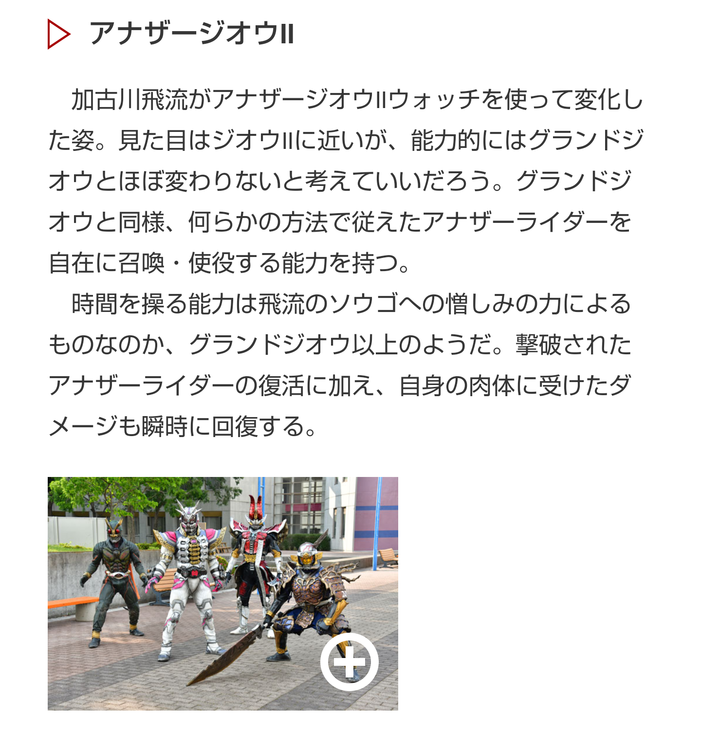 アナザー特効のジオウⅡの能力の名前ディケイド由来だし二人の力を合わせれば通じそう感アナザージオウ2の能力でも飛流君の事故が起きて両親が死んだ事実は変えられないんだろうなって