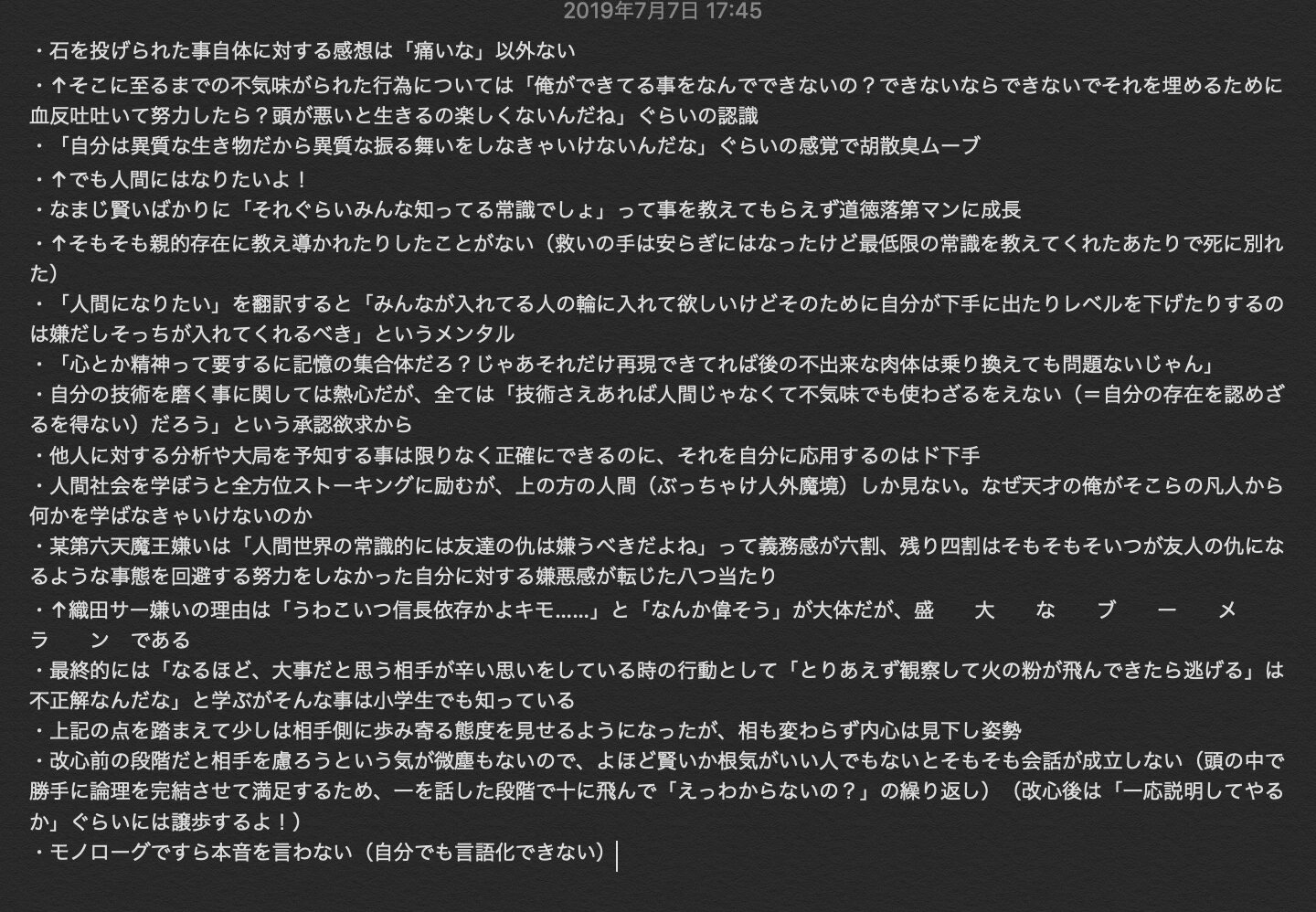 こんな感じですかね。心を読むというのならこの時の心情もちょっとならお見せできます(ちょっと深いので受け取った感情フィルターが働いてる)