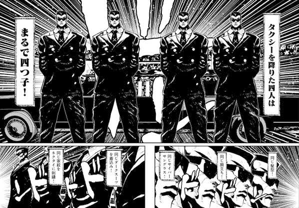 そう、ヤクザであった。しかし、ただのヤクザではない。なぜなら彼らは全員がまったく同じのっぺりとした顔と、同じ服装なのだから…!
