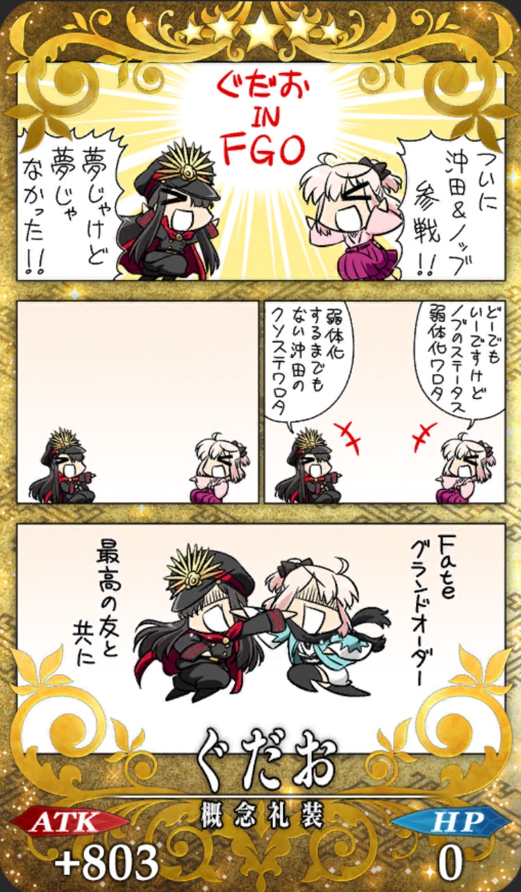 なにも考えずにこれ打ったけど今イベントのせいでギャグにしかなってねえわノッブが死んだ?是非もないよネ