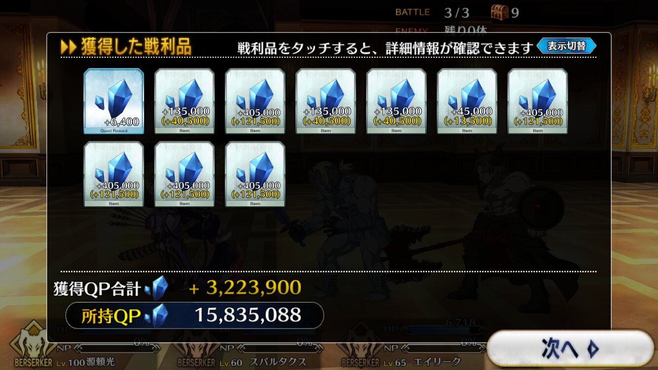 仕事の休憩中で時間取れないんでAP消費目的で開始だけしてキープしてたらこの結果