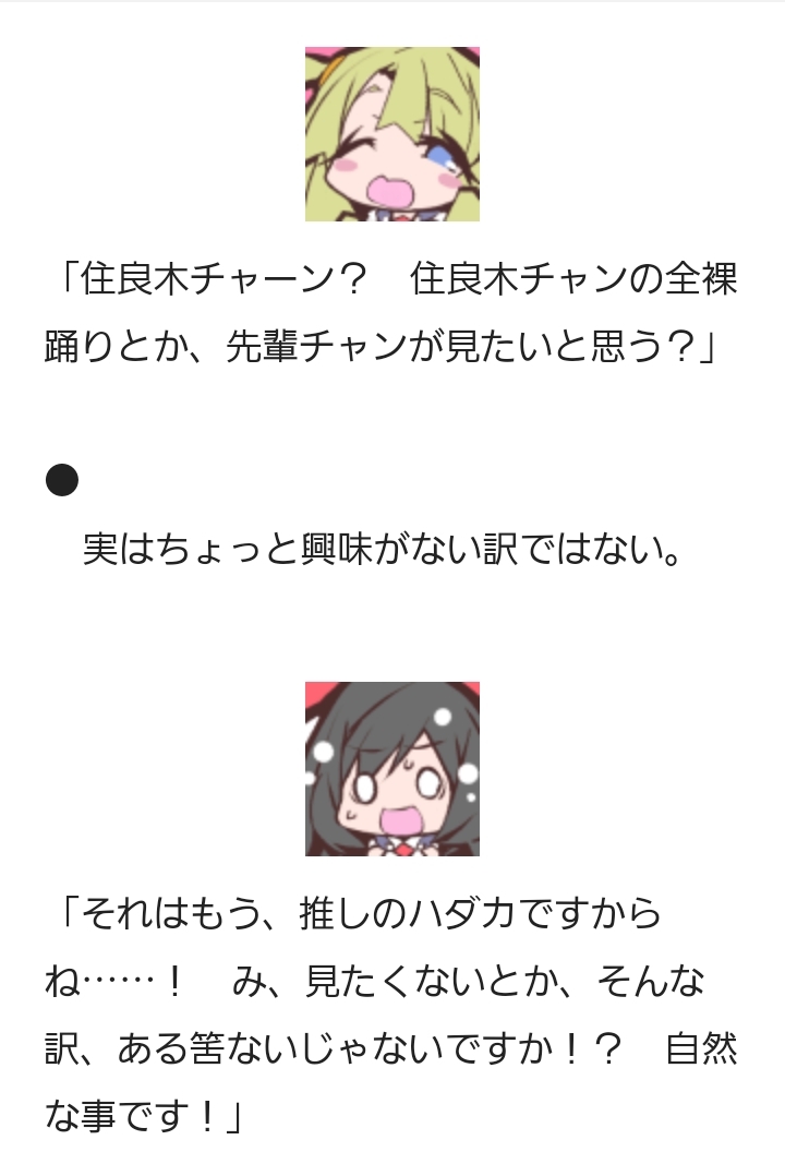 シリアスフラグ解消済みとかいよいよ切調ただの割と可愛い子たちでしかないんじゃ…いやまあそれぐらいの方が安心できるけど>>132