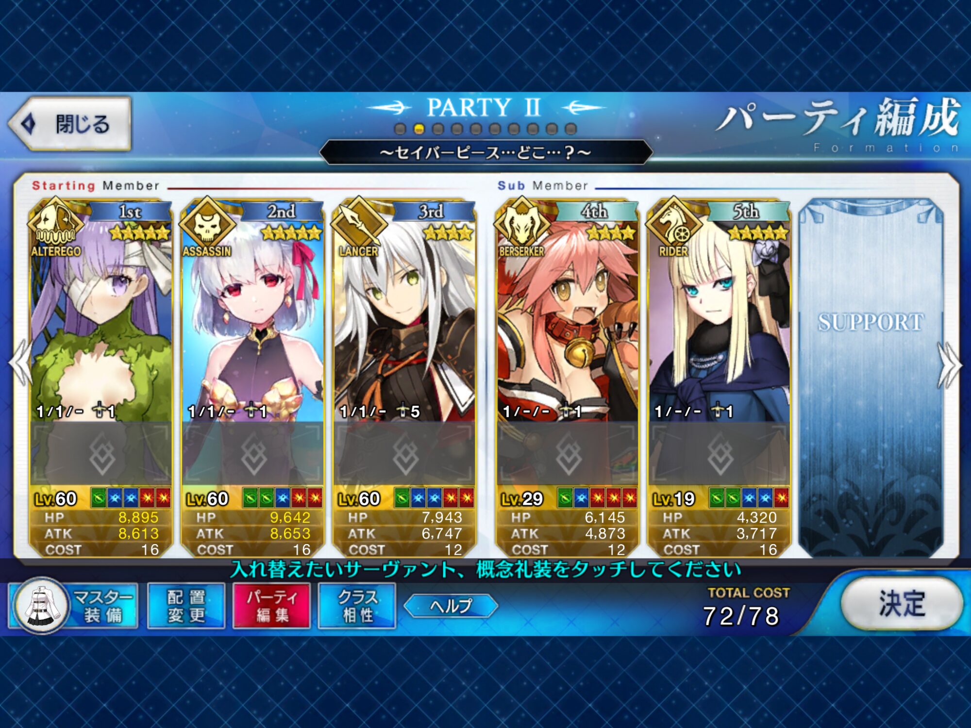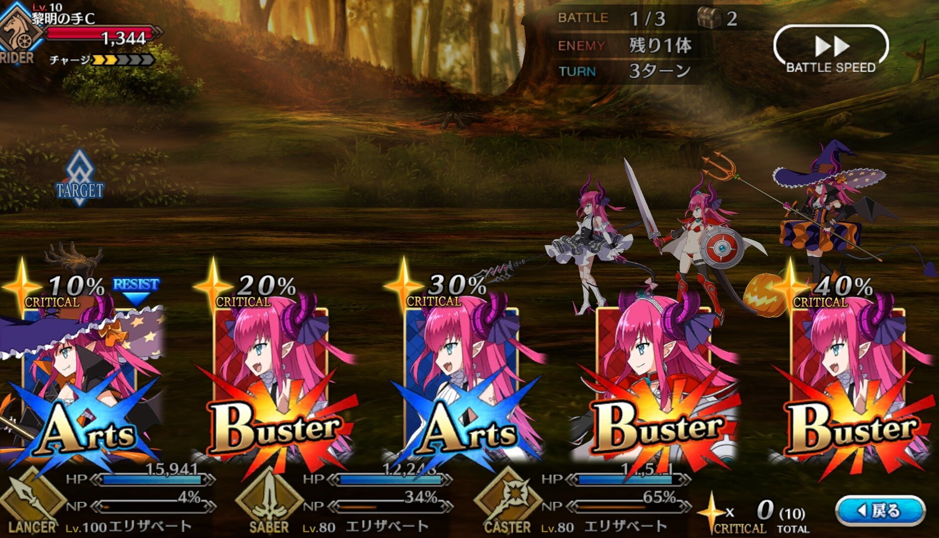 探偵と神父が防御を剥がし、朕が攻撃を無駄にし、聖女がバステを解除し体力回復して、残りがBBちゃんをフルボッコ。