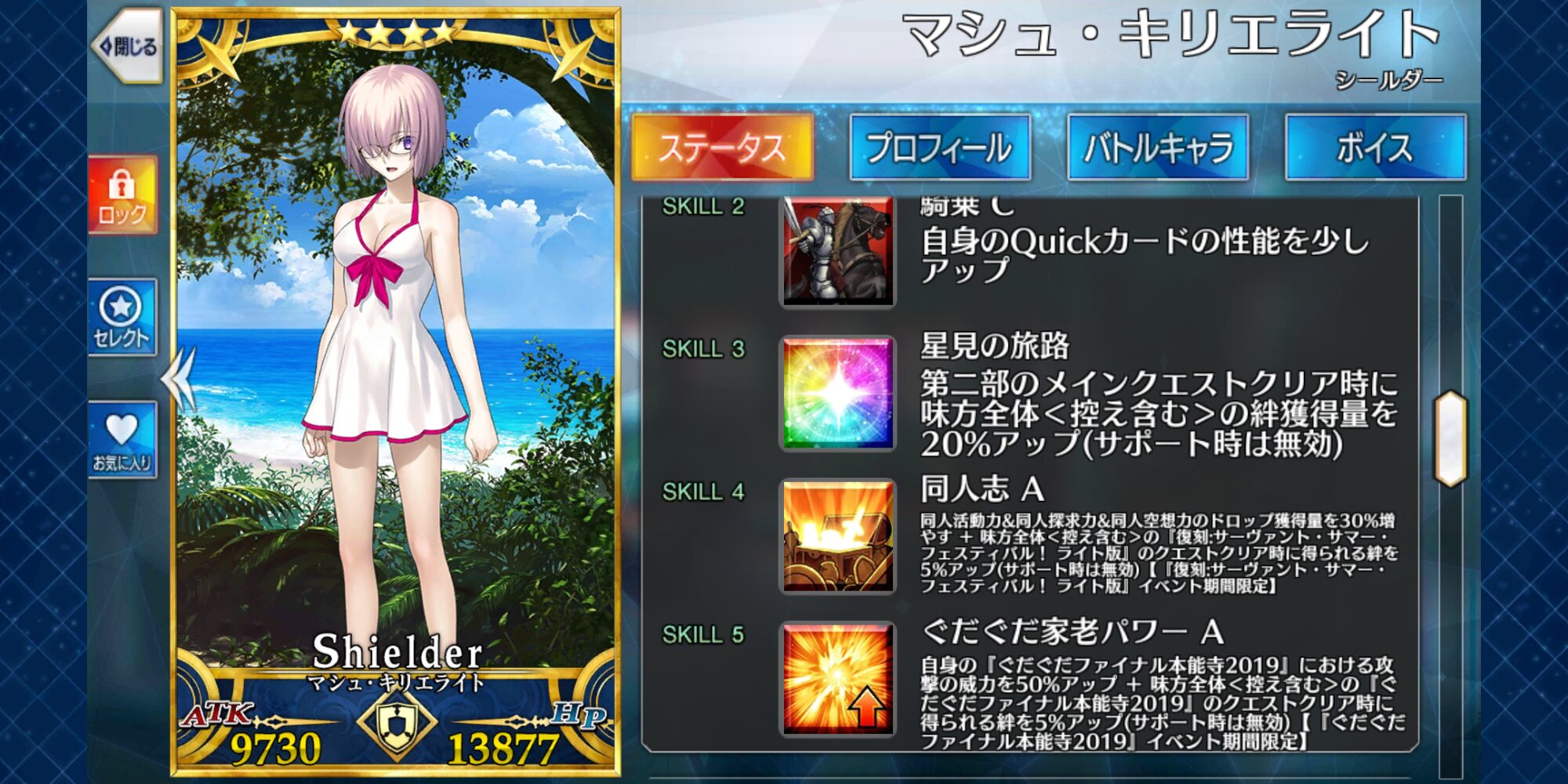 4ヒットQが三枚に自身のQ威力アップと相手のQ耐性ダウンを持ってスター集中を持つ、典型的なQ型クイックサブアタッカー兼スター供給役。