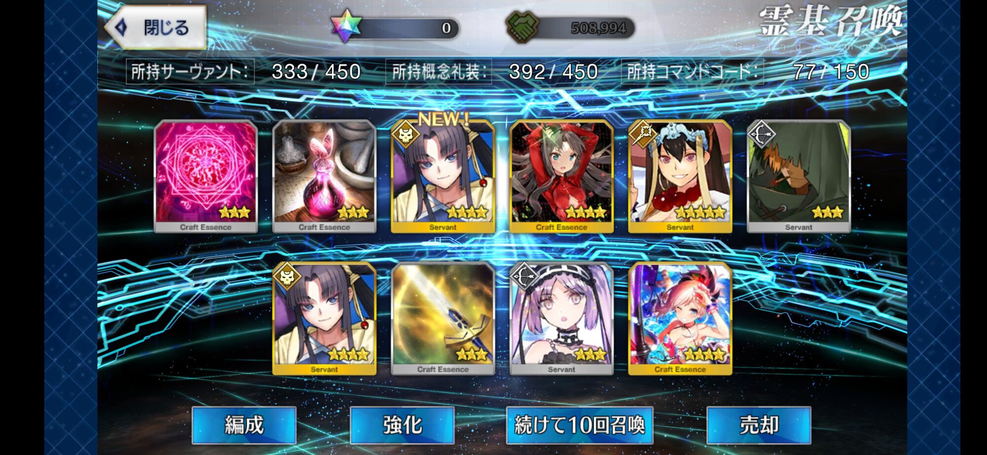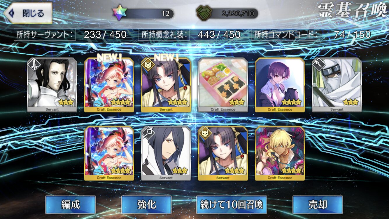おめでとう!星5一枚、星4二枚とは凄いな!まさかテキトーにやったので1000取れるとは思わなんだ