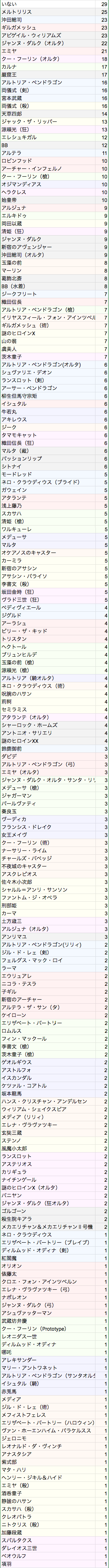 俺の場合はエレちゃん、式部さん、スカサハ師匠、アンメア水着とかだな。なぜか黒髭とおっきーが落ち込んでる…どうしたんだろう