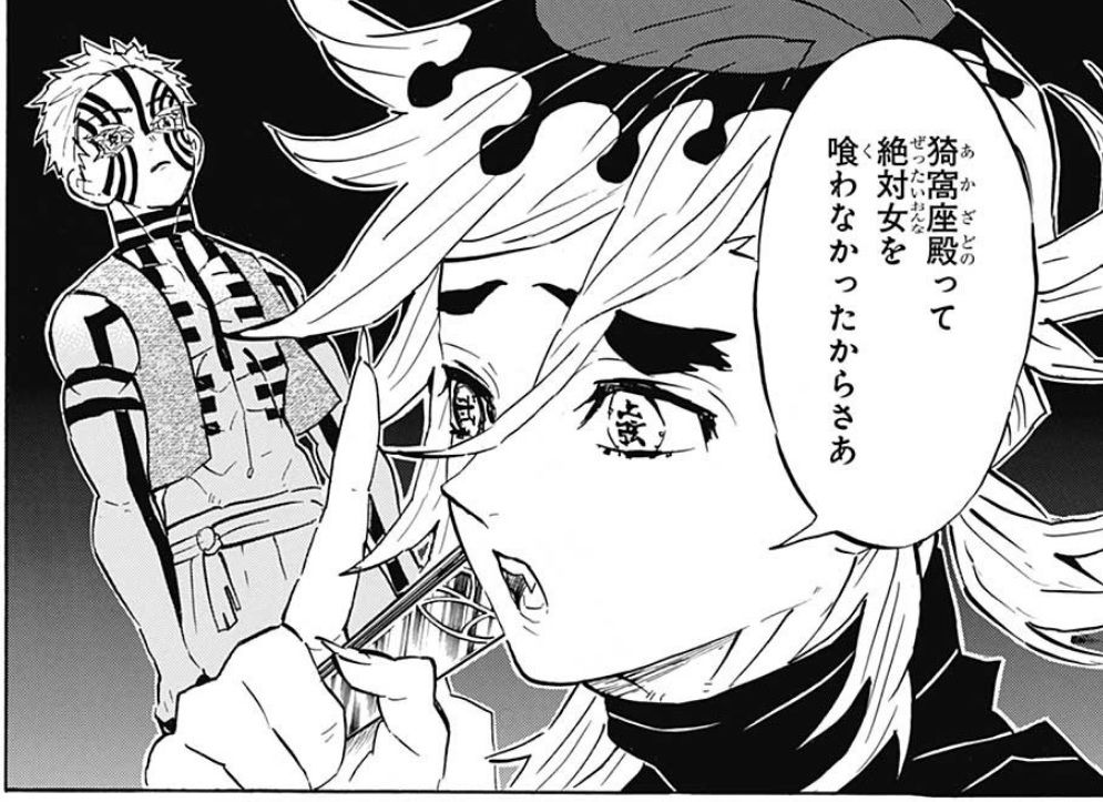 童磨殿が人気ない(そんなことないと思うけど)のは直前のアカザ殿の過去がワニ渾身の一発だったのと本気出す前にしのぶさん渾身のハメ技食らって実力を発揮しきれなかった事、後は飄々としてたのにカナヲ様に煽られておこになっちゃったからだと思う>>941