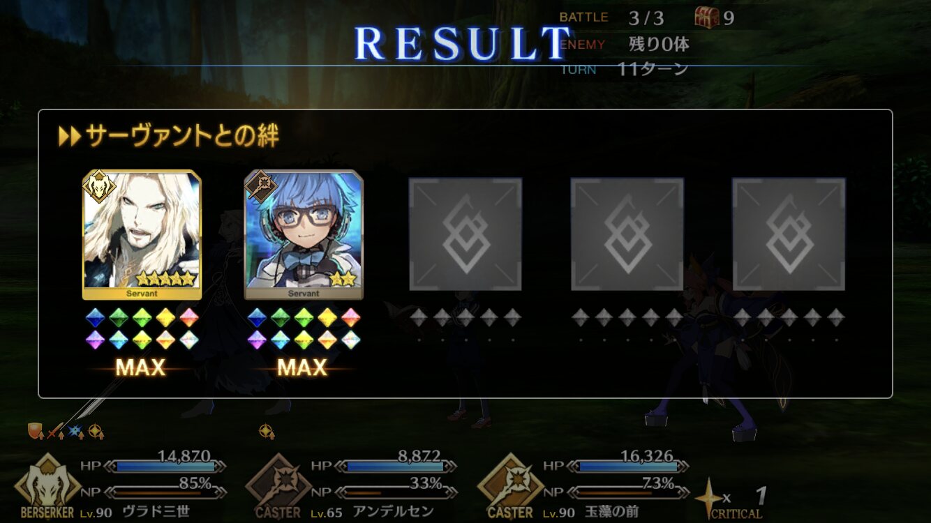 確認したらうちの一人目の絆Lv10ことヴラド公だったんで、絆礼装ヴラド公で懐かしのArtsパで達成