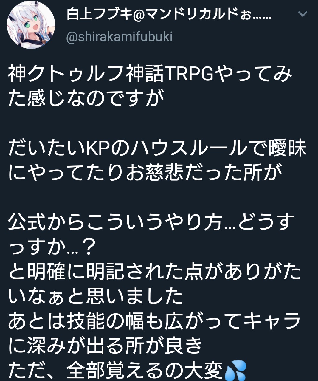 終わってしまったねぇ…PLがリアルSAN値ガリゴリ削られててどうなるかドキドキしたわ