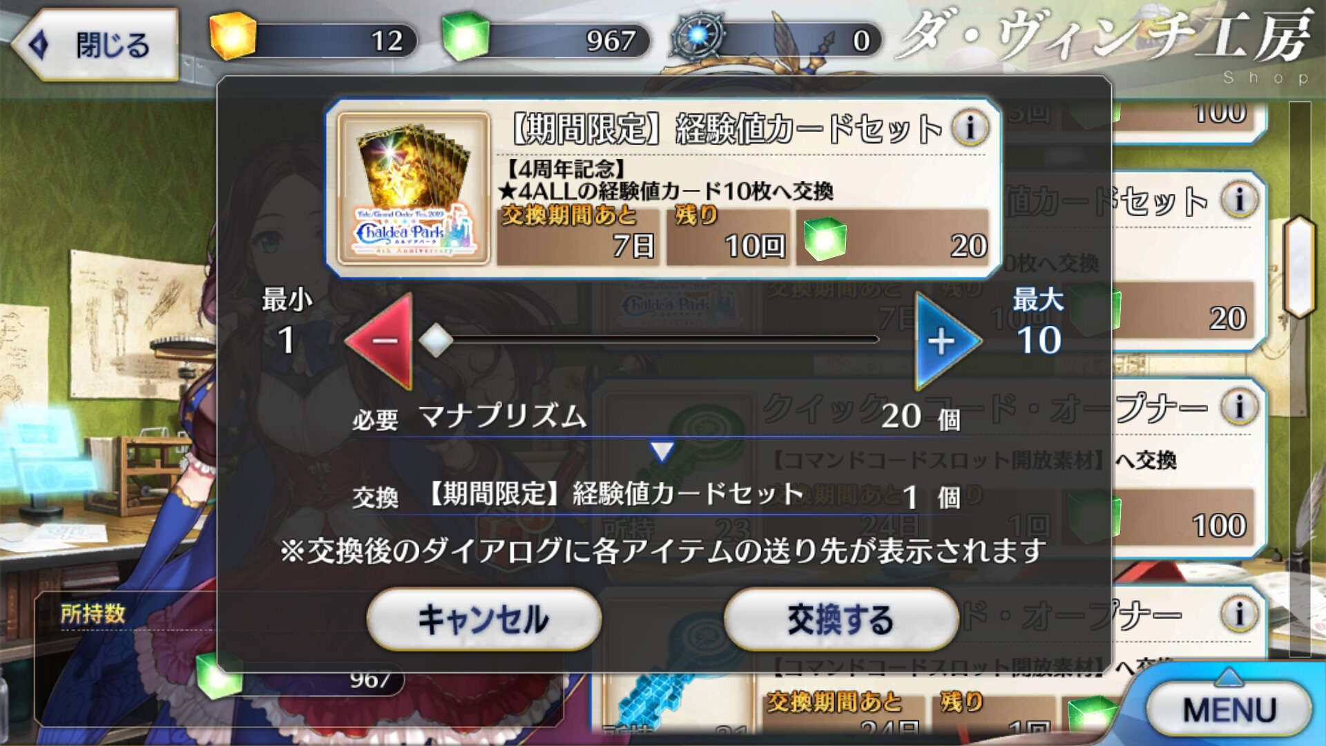 使い道?言わなくても分かるだろ?カレスコ無い、凸虚数も無い(三年以上やってるけど)身としては、虚数アーラシュさんはとてもありがたいです