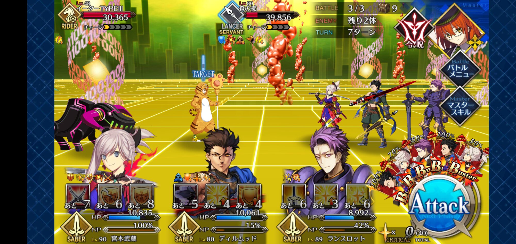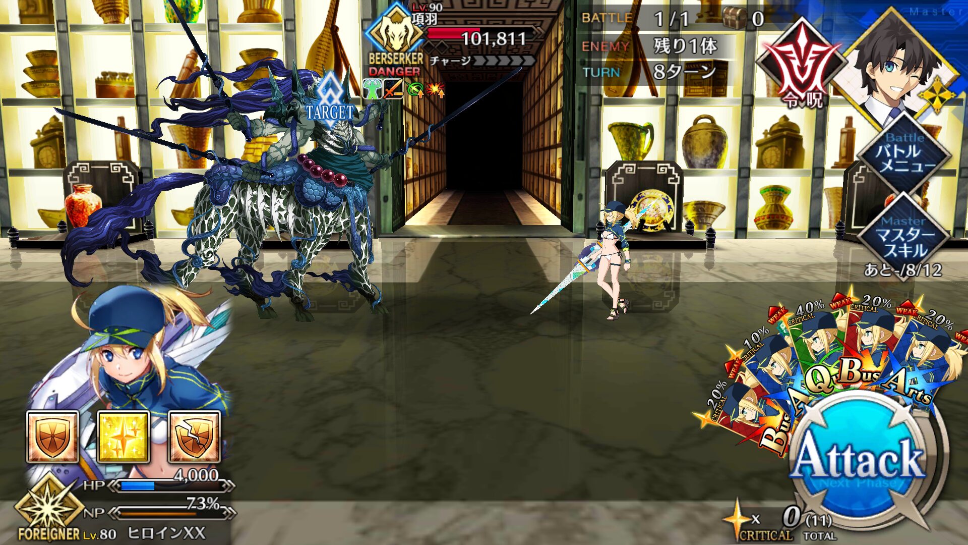 このパターン上手くいくとスカスカシステムの弱点をカバー出来るかもイベント礼装(火力バフNPチャージなし)をガン積みして最終再臨だけして止まってる特攻鯖(火力バフなし)の素なぐりで10ターンくらい駆けて超級殴ってるときが一番このゲームでしんどいときだと思う