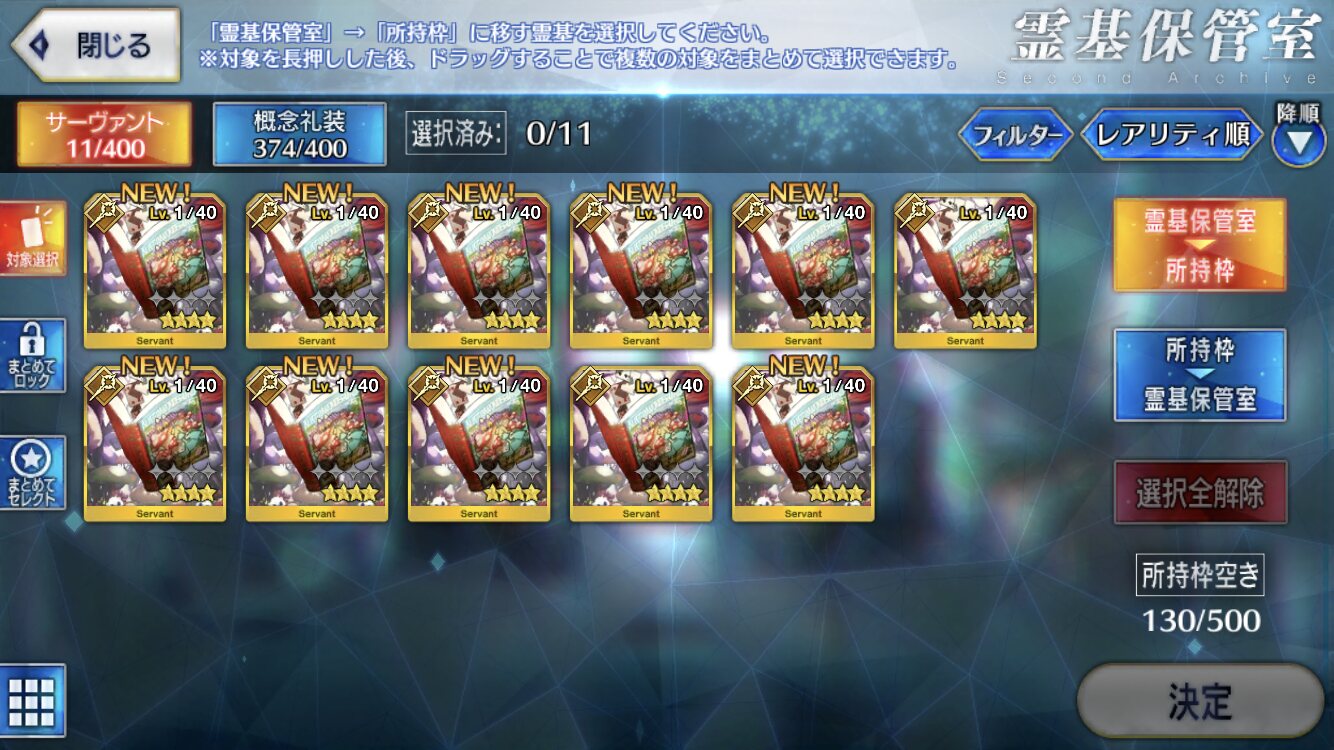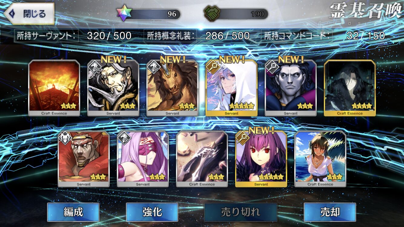 まぁガチャ引く頻度少ないから当たり前なんですけどね自分が突然カレを大量に持っているのはサービス開始直後にピックアップ無しの無謀ガチャをセイバー目当てに回しまくったからです