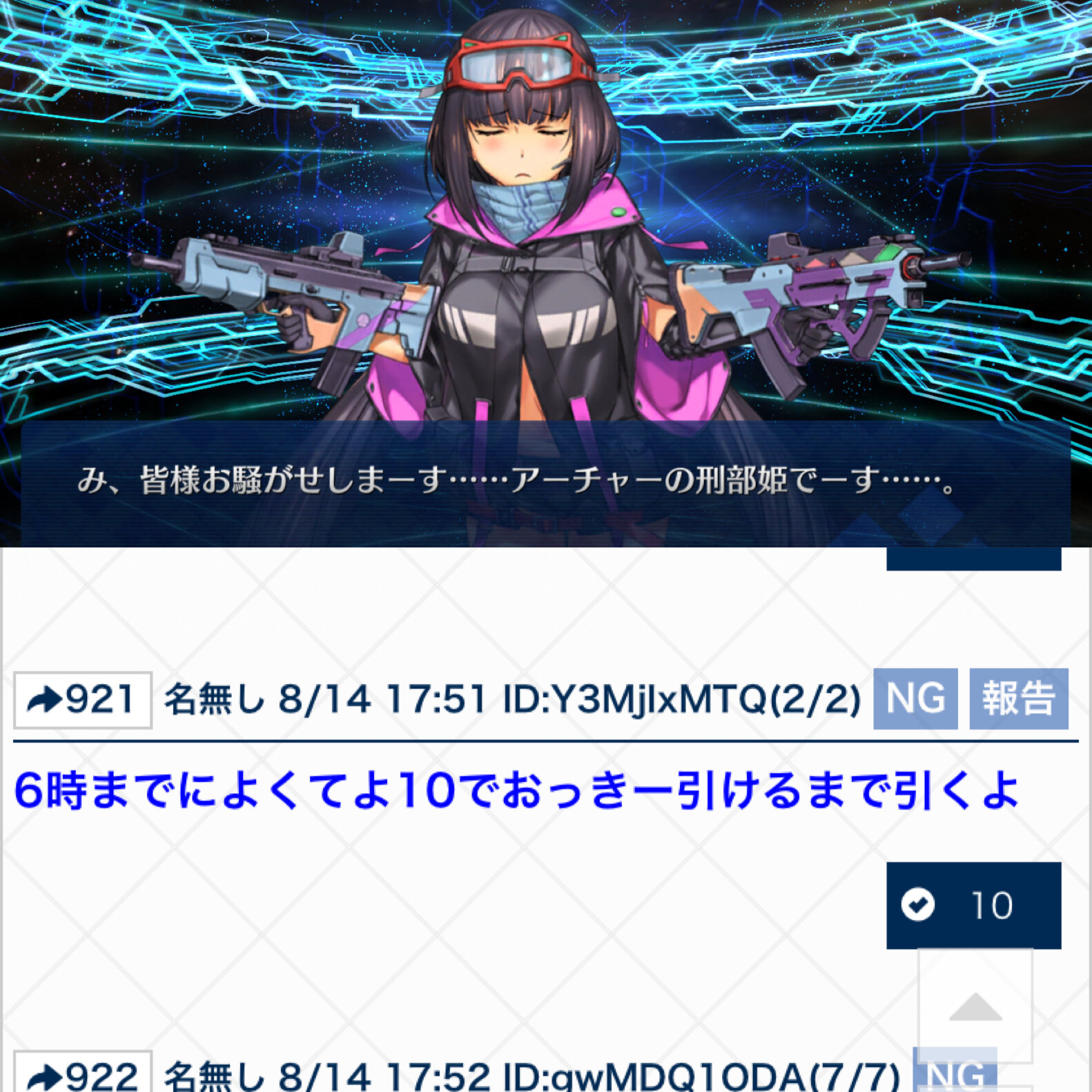 ネタバレ、最終再臨バレに関する話題で書き込むのが躊躇われる場合は下のスレへ。