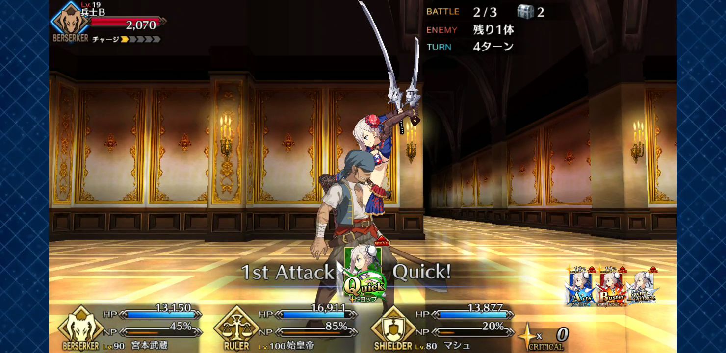 敵をすぐ倒しちゃう周回には使えないけどやや長期戦になると普通に吸血みたいに使えて便利そう沖田、メルト、槍王とかいう最強の布陣