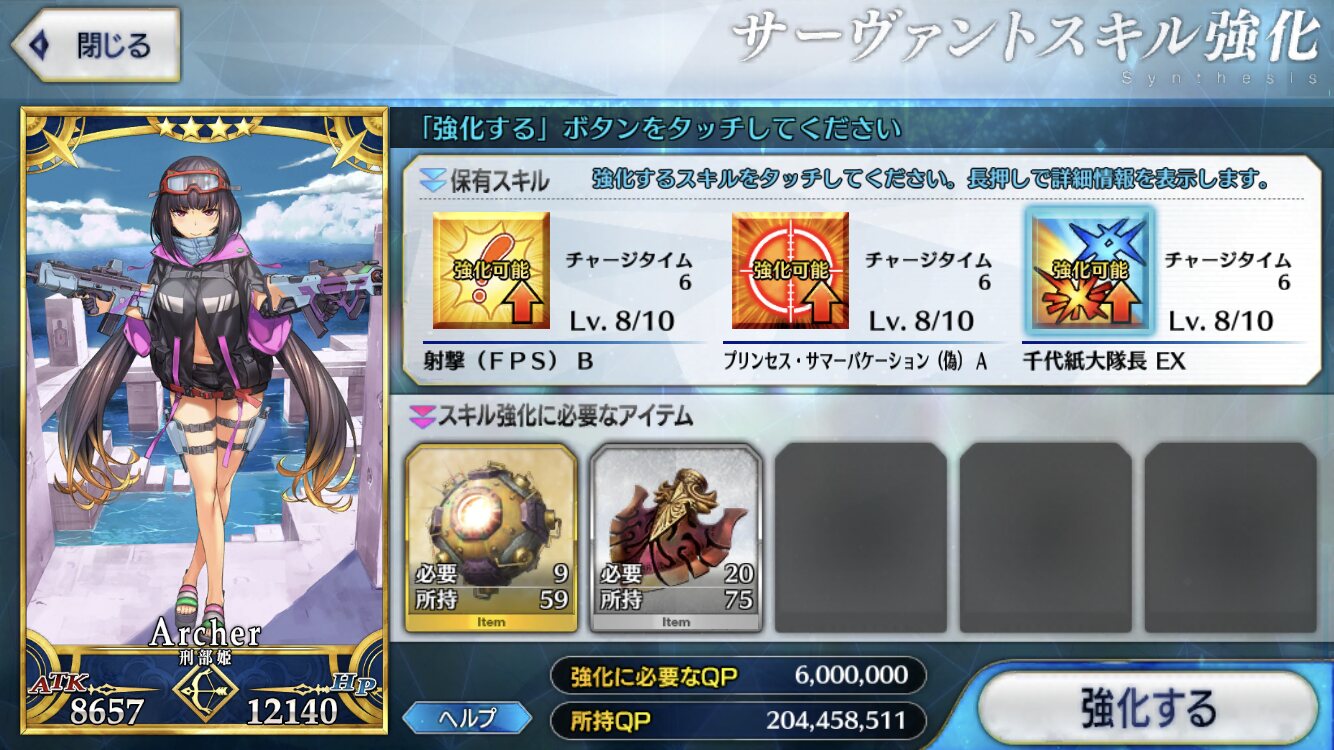 武蔵ちゃんSLv8→9で鏡使うのかよ今回は更新分のダウンロード鬼速かったんだが