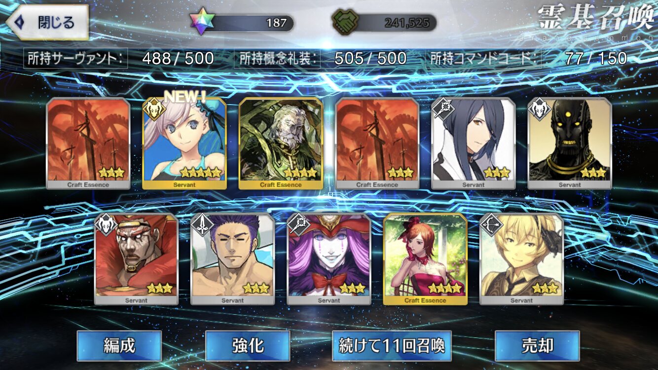前半どこまでガチャしよう………(まだ礼装のみ)獅子王による性伐が始まる……!!青王が檜風呂で見せた獣の貌してやがったぞ!!