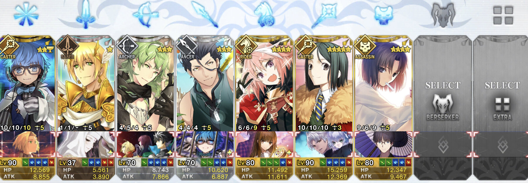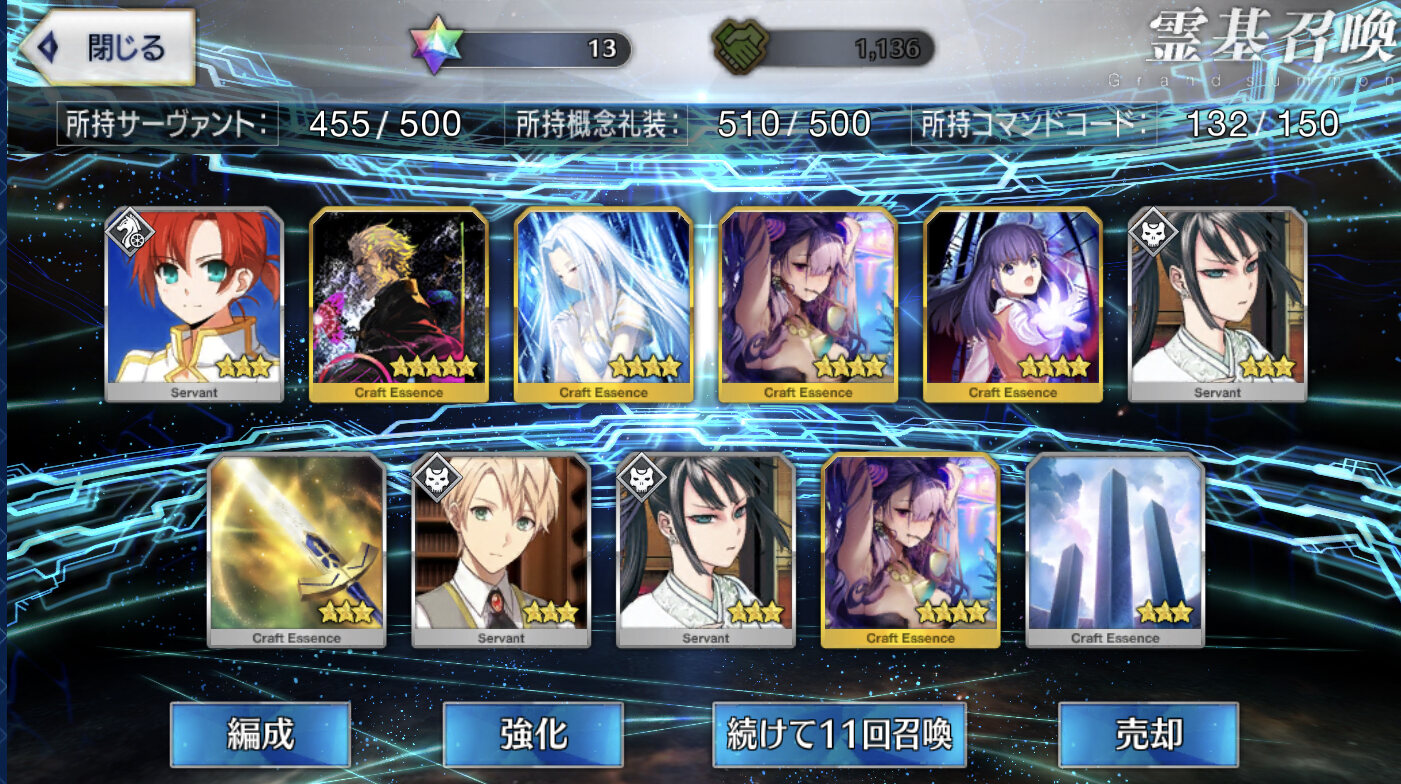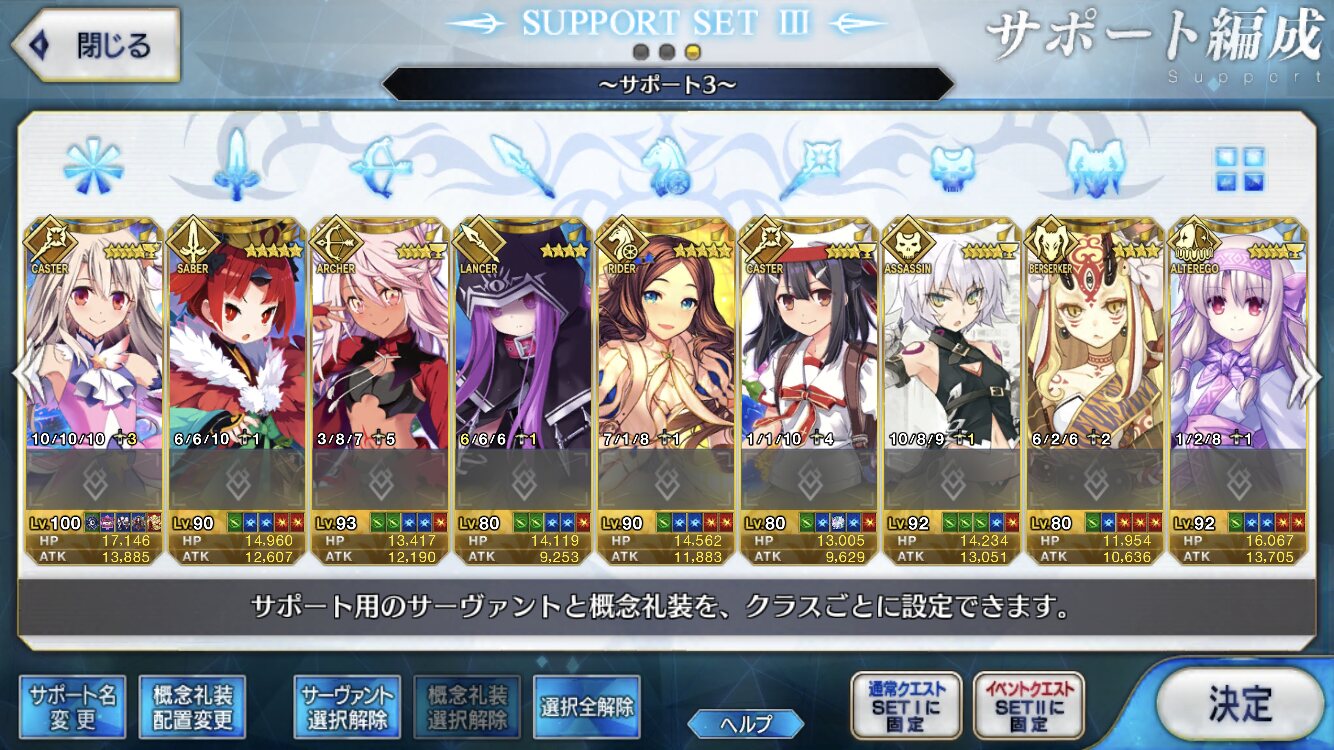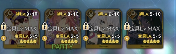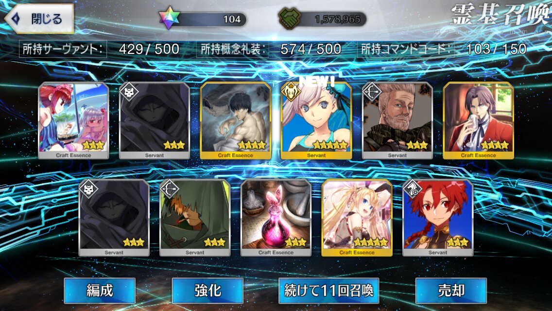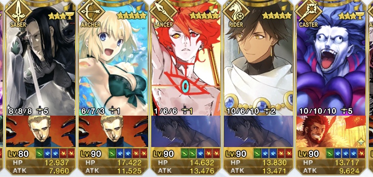 1回:ヘラクレス、スカディ、ティアマト、ナポレオン、リップ、乳上、青子、おっきー、武蔵ちゃん、アビゲイル、モナリザ、コルデー、エレナ、アルトリア、アタランテ、エレシュキガル、モーさん、キルケー、式、フラン