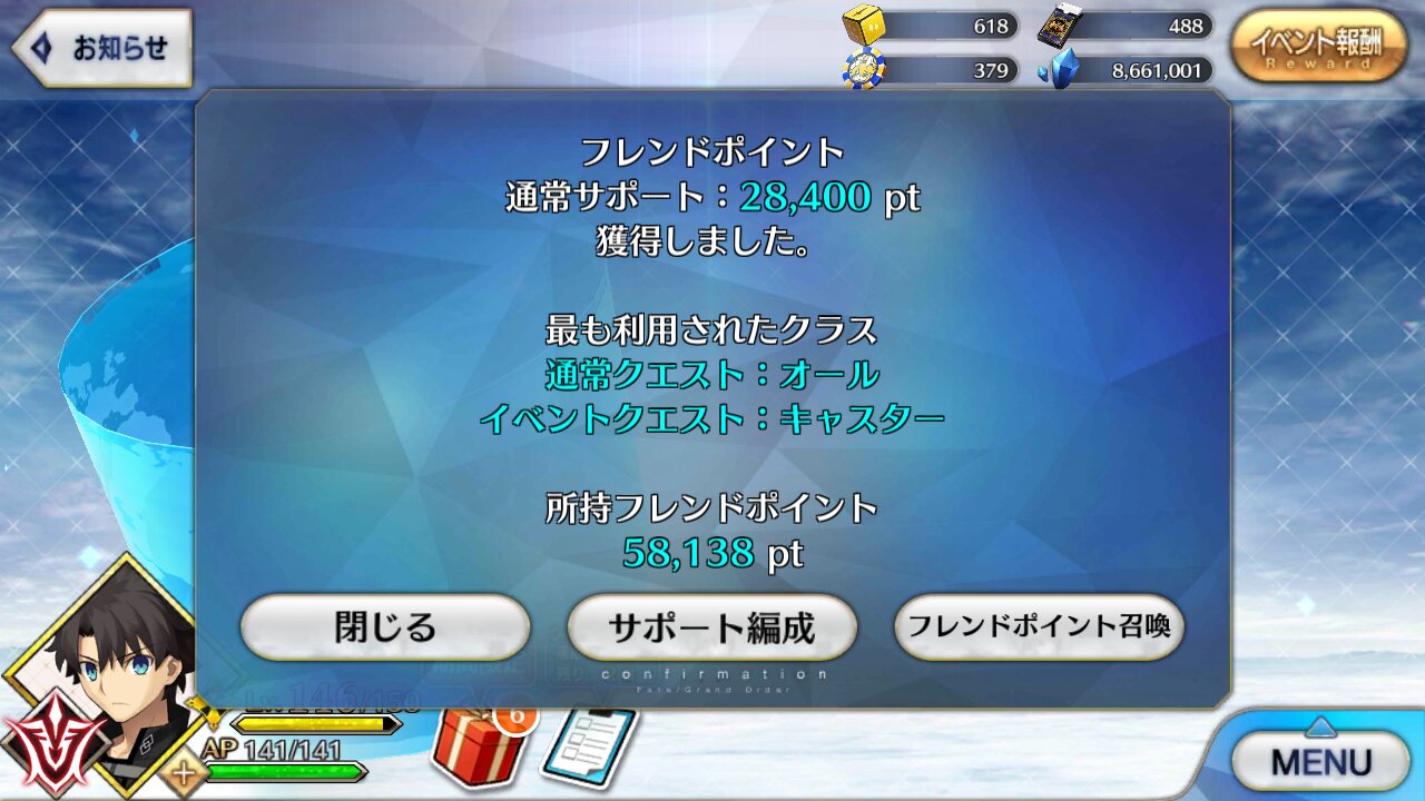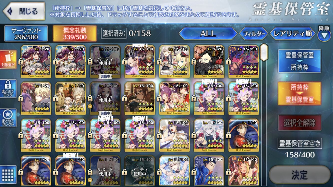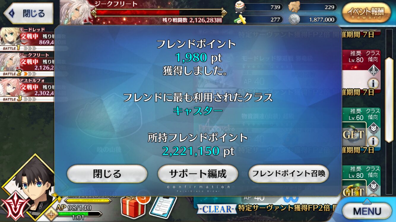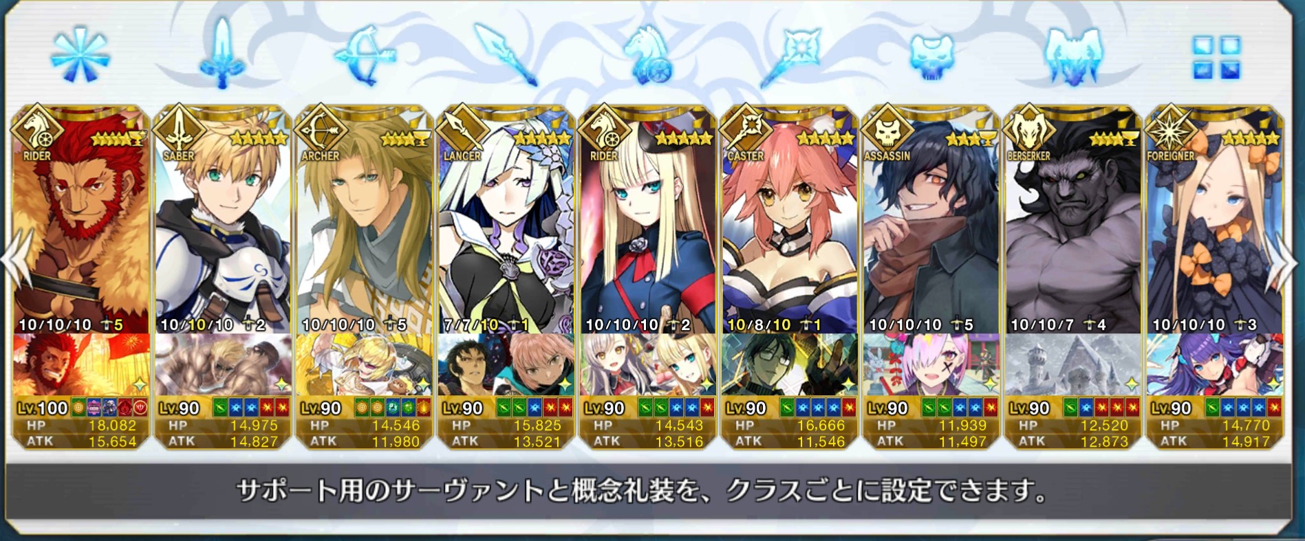 1回:ヘラクレス、スカディ、ティアマト、ナポレオン、リップ、乳上、青子、おっきー、武蔵ちゃん、アビゲイル、モナリザ、コルデー、エレナ、アルトリア、アタランテ、エレシュキガル、モーさん、キルケー、式、フラン