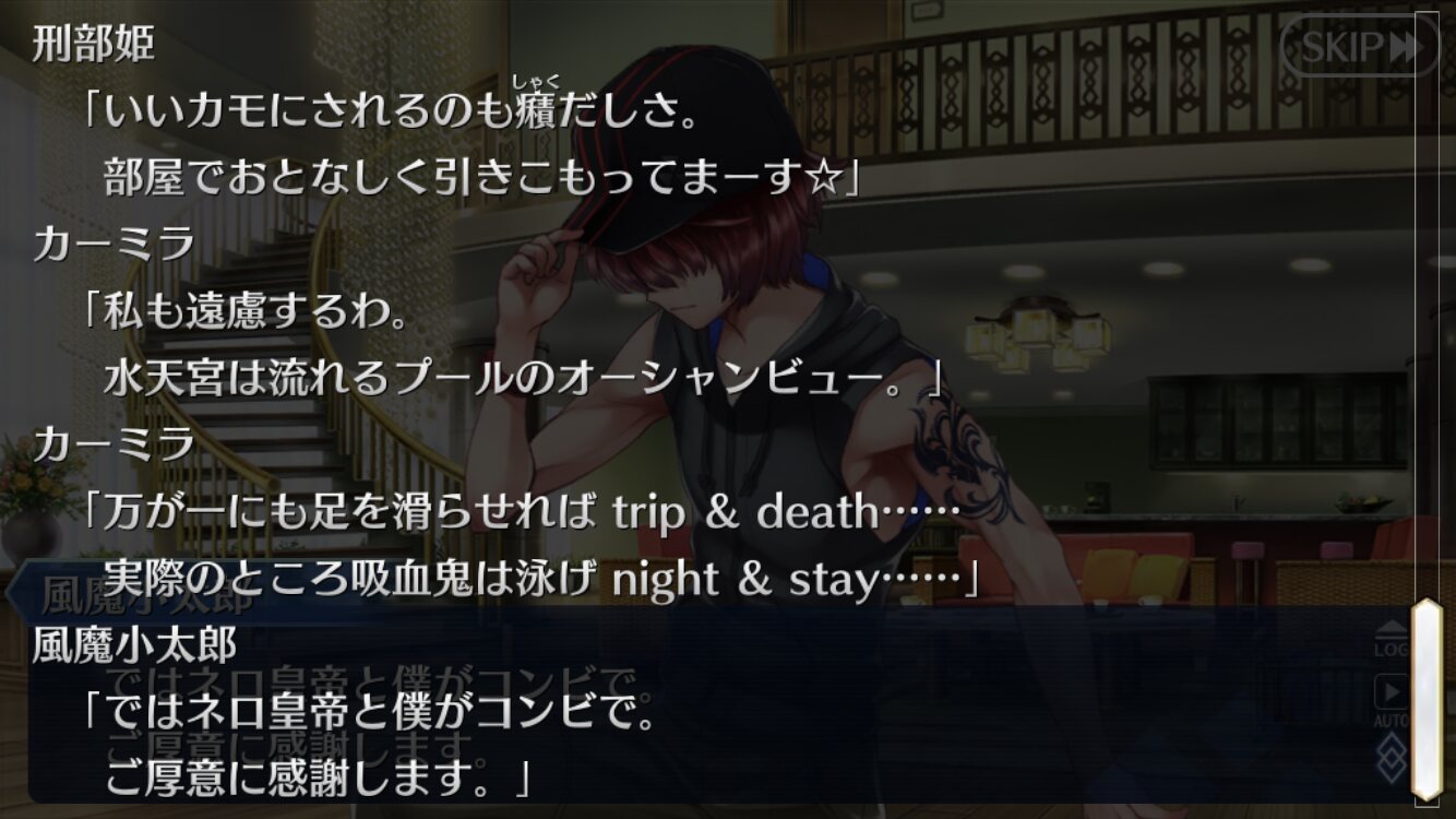 流石の拷問した犠牲者の一人ではないと思うリップの中でアーチャーとライダーはそれなりの評価のようだがアサシンは何が気に入らないんだろうか。気配遮断持ちとしてのライバル心でもあるのか