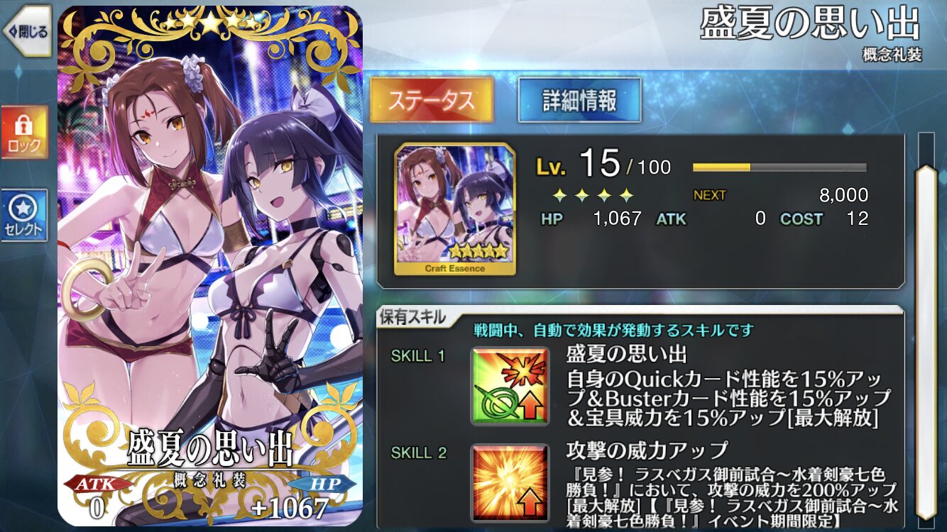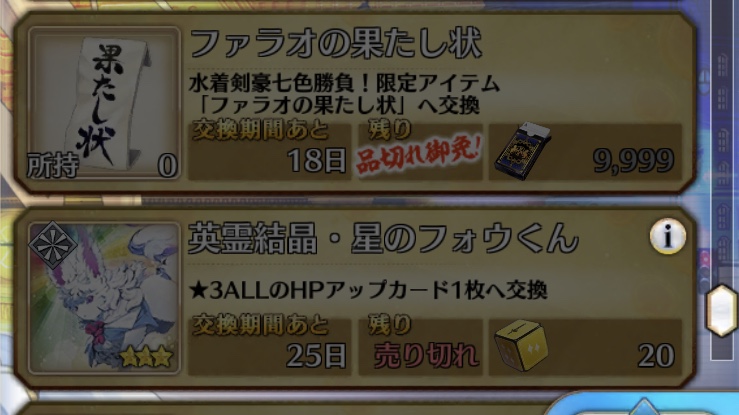 というか、試そうとすると低HPに追い込まないといけないから中々試せない…水着サーヴァント必須の貝殻を落とすフリクエ、出て欲しい……