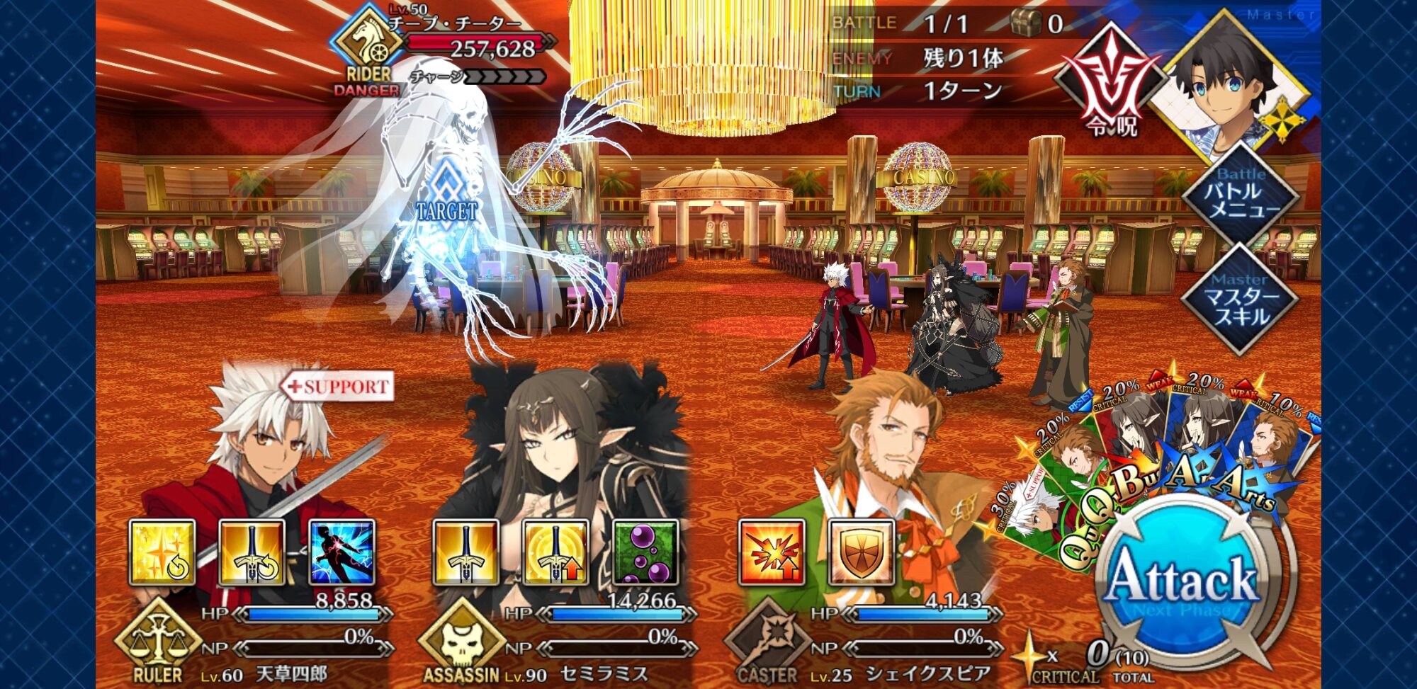 ミストレスCはQ宝具だから弓は支援できないけどそういえばおっきー倒した後に後5回闘うって言われてるってことは。