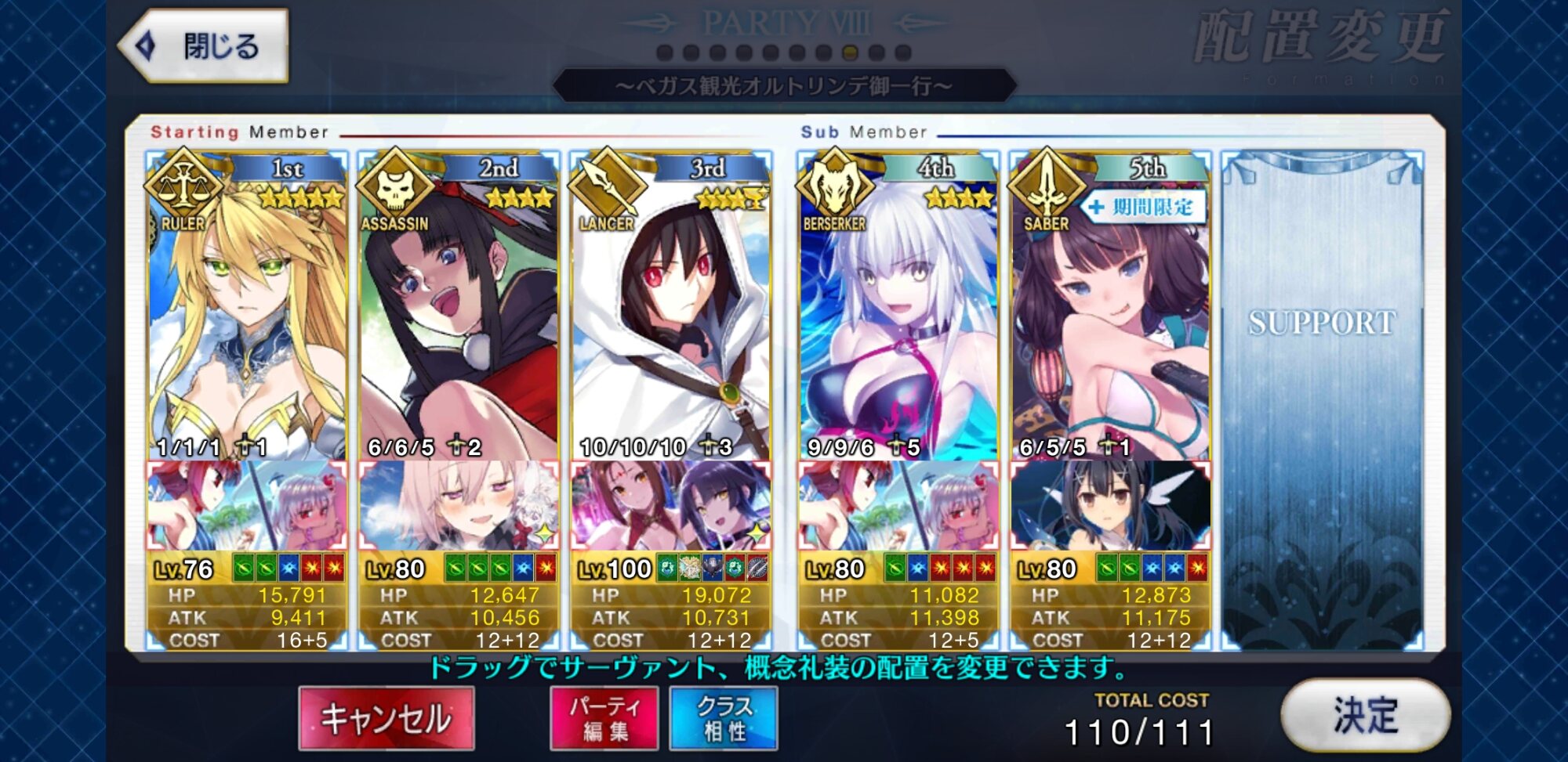 基本三臨だけどおっきーは二臨だったりロビンは年中水着だったり