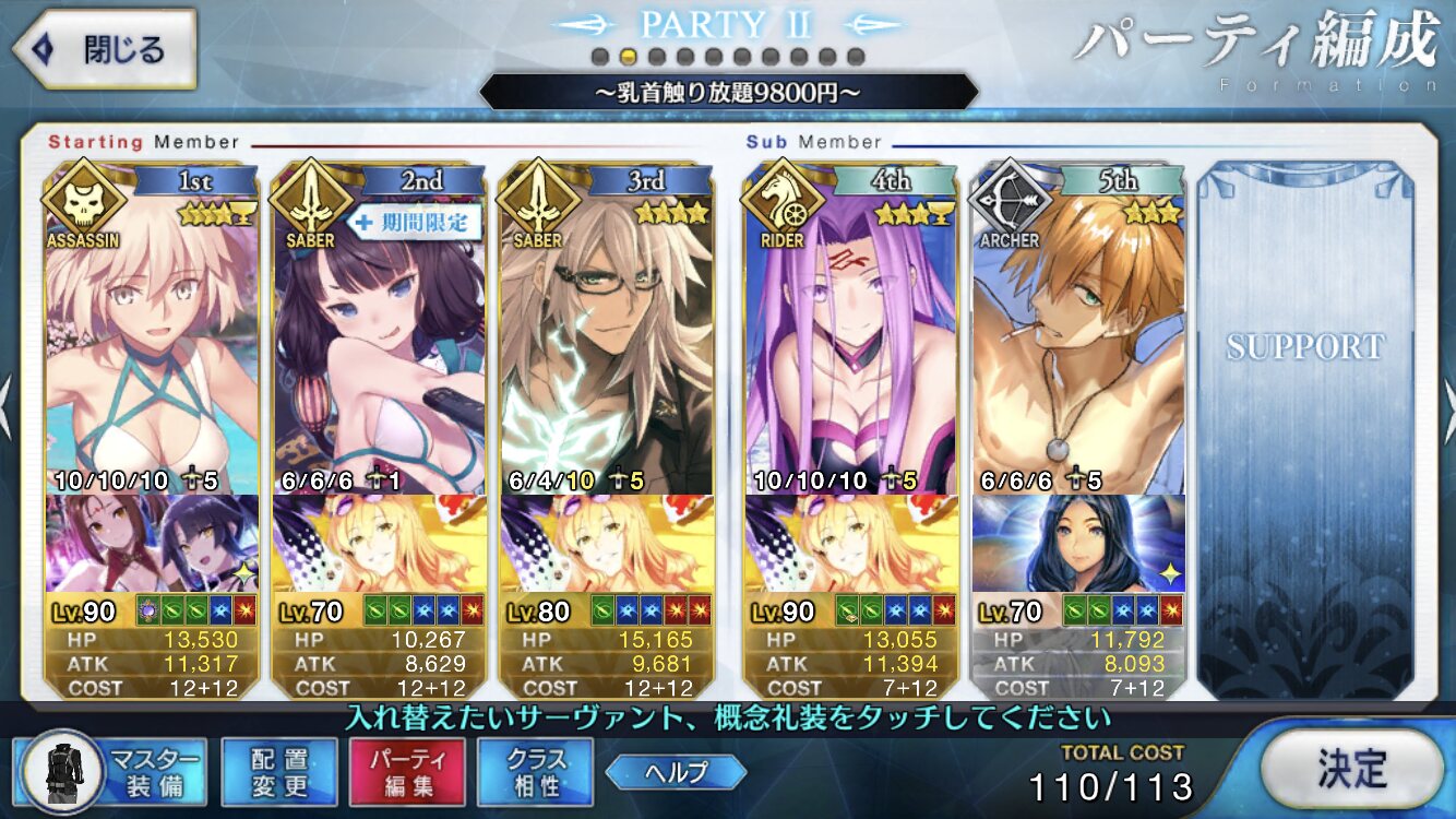 面子に関わる経緯もあったからなおさら容赦ないよね今回そういえば、今回円卓組が勢揃いだったけど肝心の勝負の時に水着差分も持ってるベディヴィエールが全く出てこなかったのがちょっと気になったな、マーリンあたりの手引きで別行動してる可能性もあるけど