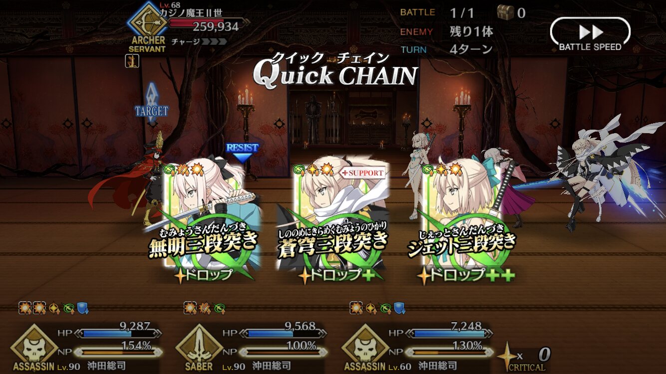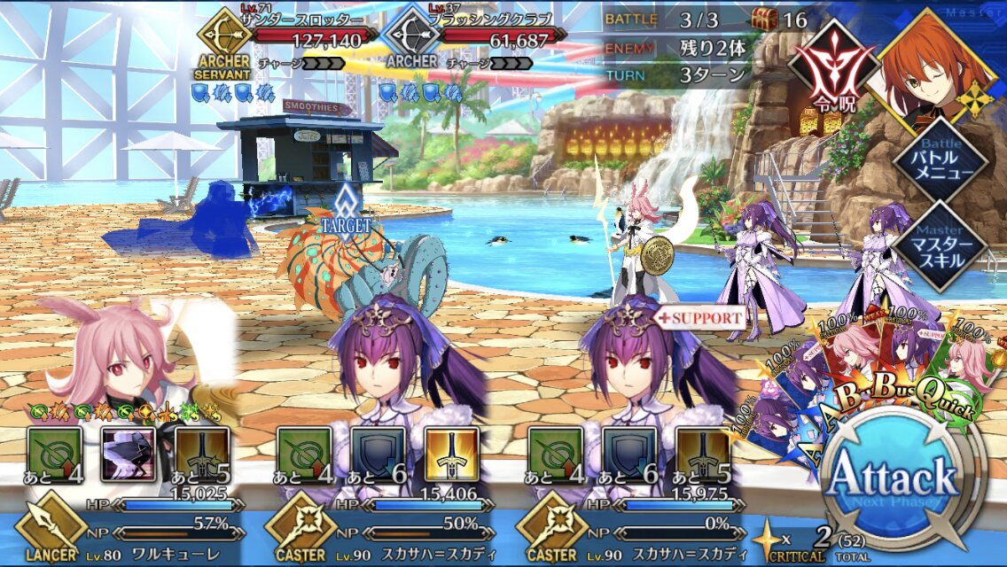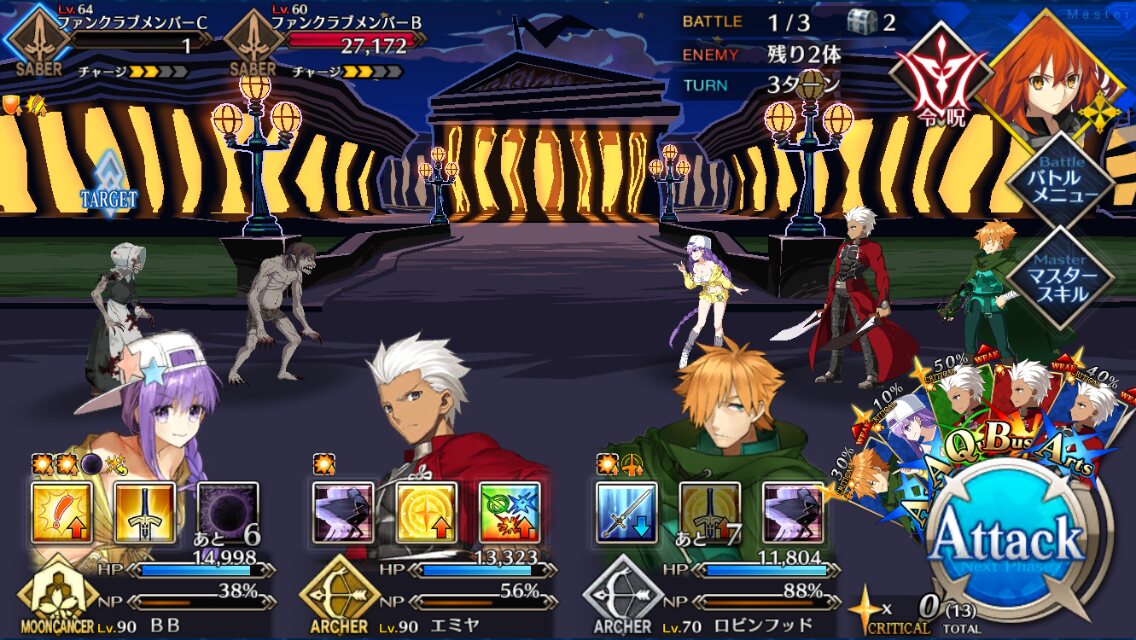 三ターン周回目指さずに特攻礼装持ちをアタッカーにすればいける。>>418