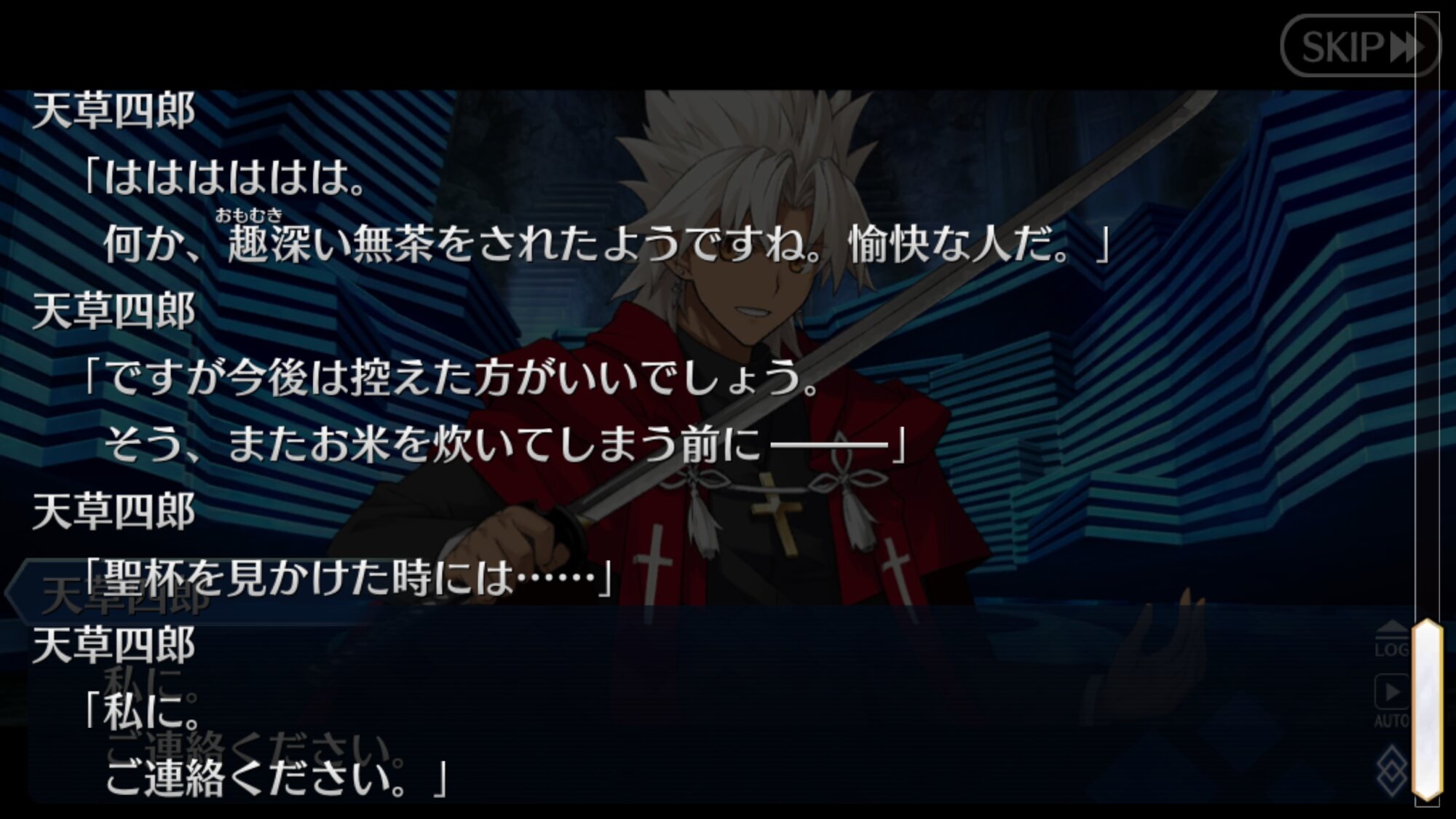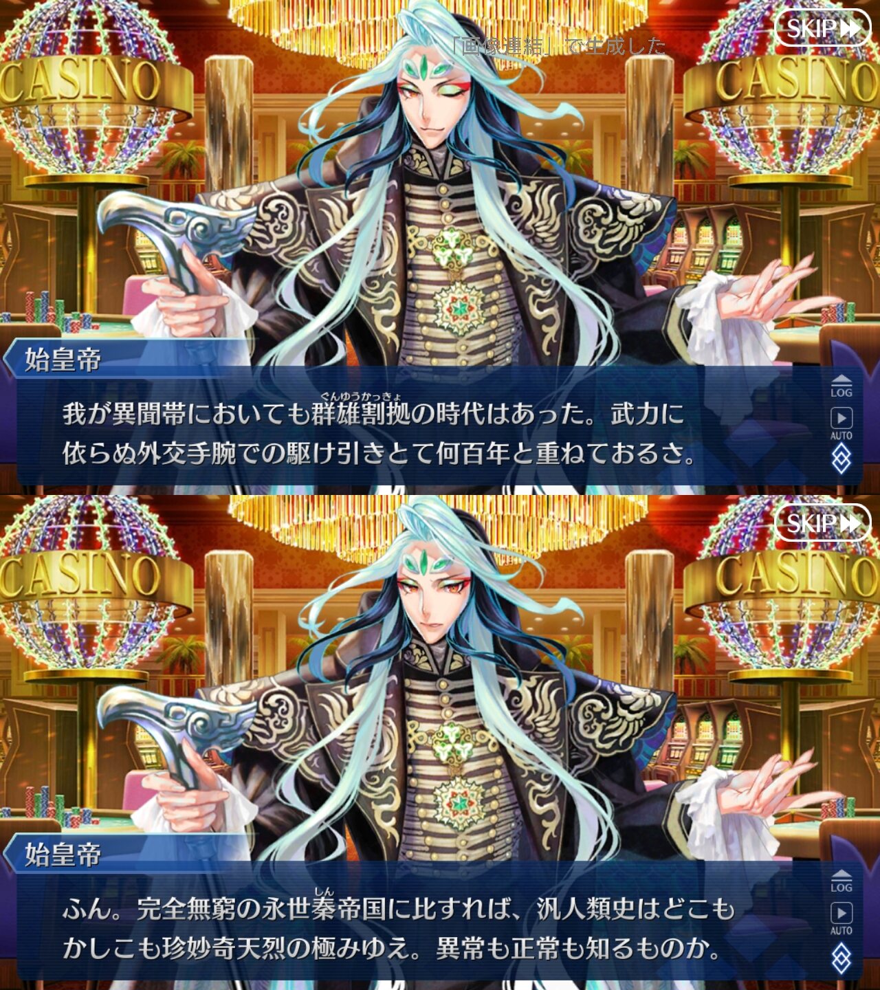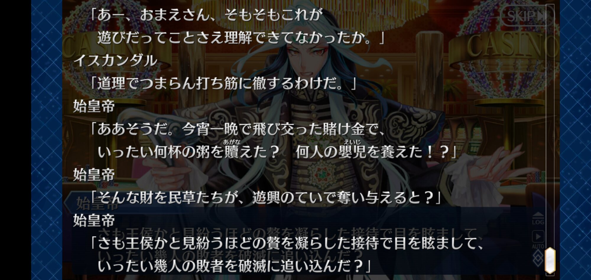 てかシナリオでも見なかった始皇帝のブチ切れ顔がここで出て来るとは水着鯖になったキャラは次以降の水着イベントにもよく出るし