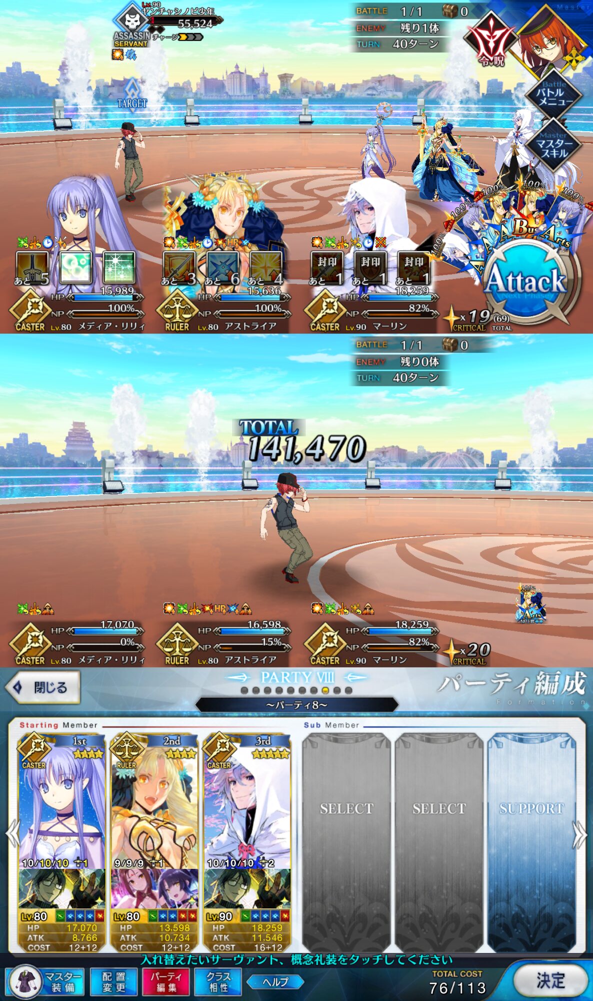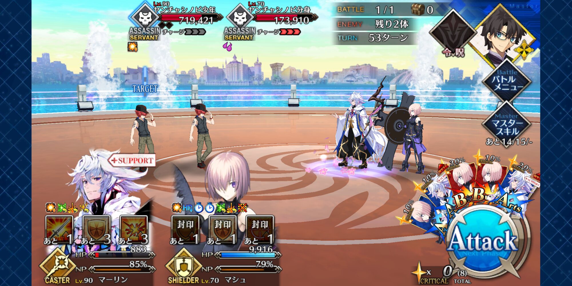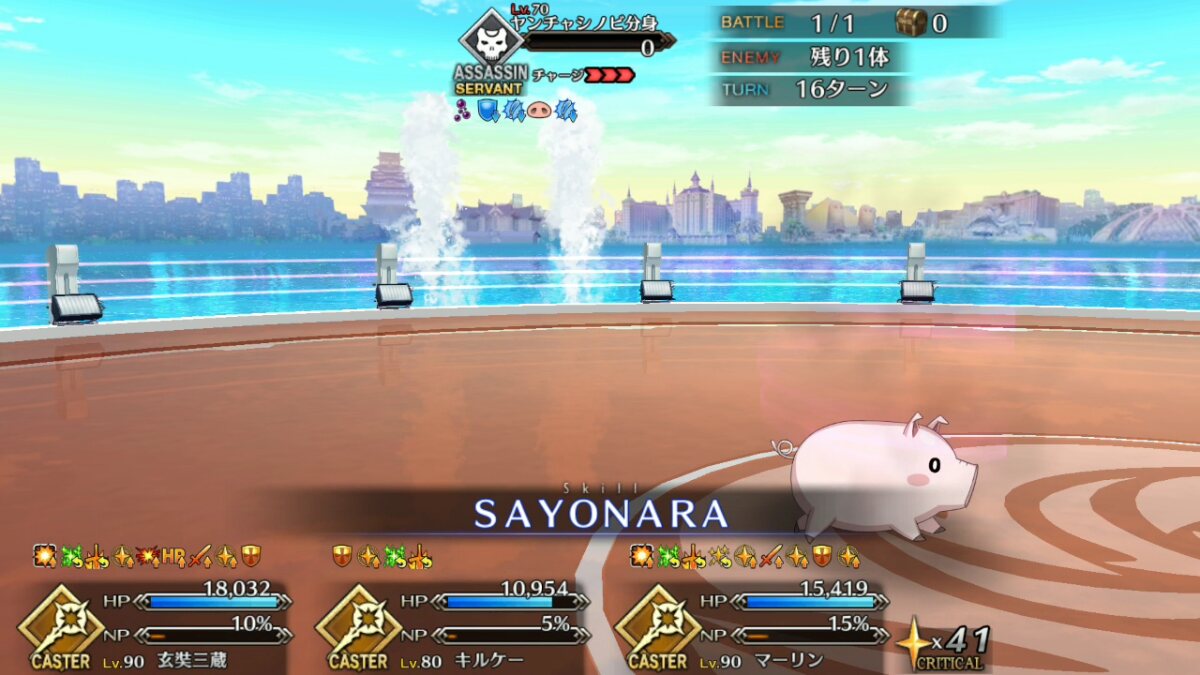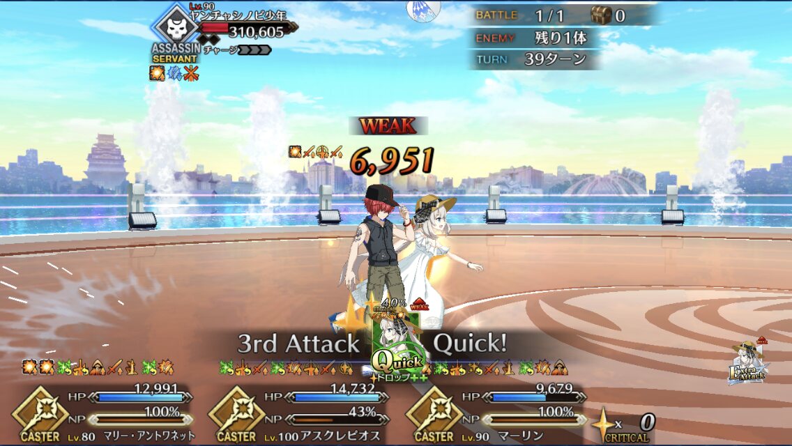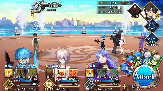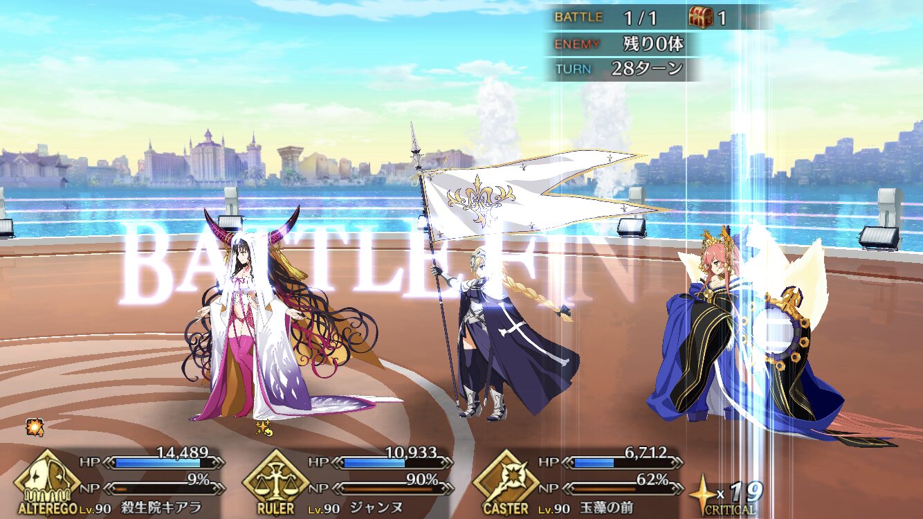本垢の方はマーリン無しで行ってもっと危なっかしかったんだよなぁ……高難度、前回はマシュマーリンフレジャンヌのガチガチ耐久パ組んで84ターンかけて倒したんだよな…