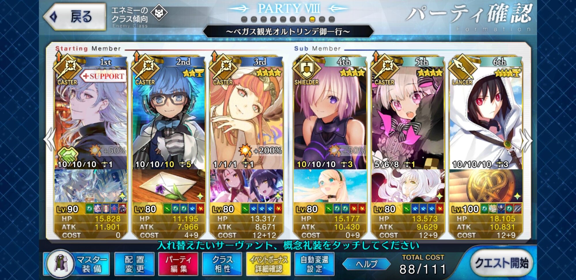 増加105%で回るか90%でQP礼装で回るか悩ましいどうせ、高難易度クエストで消費されるでしょ