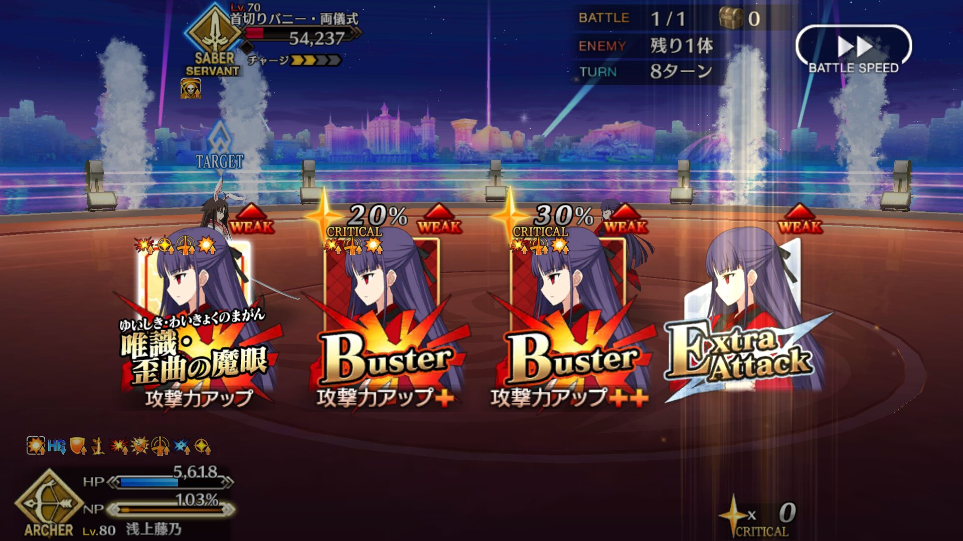 1wバフ乗せてクリ殴り、北斎のカードが少なければ英雄作成。