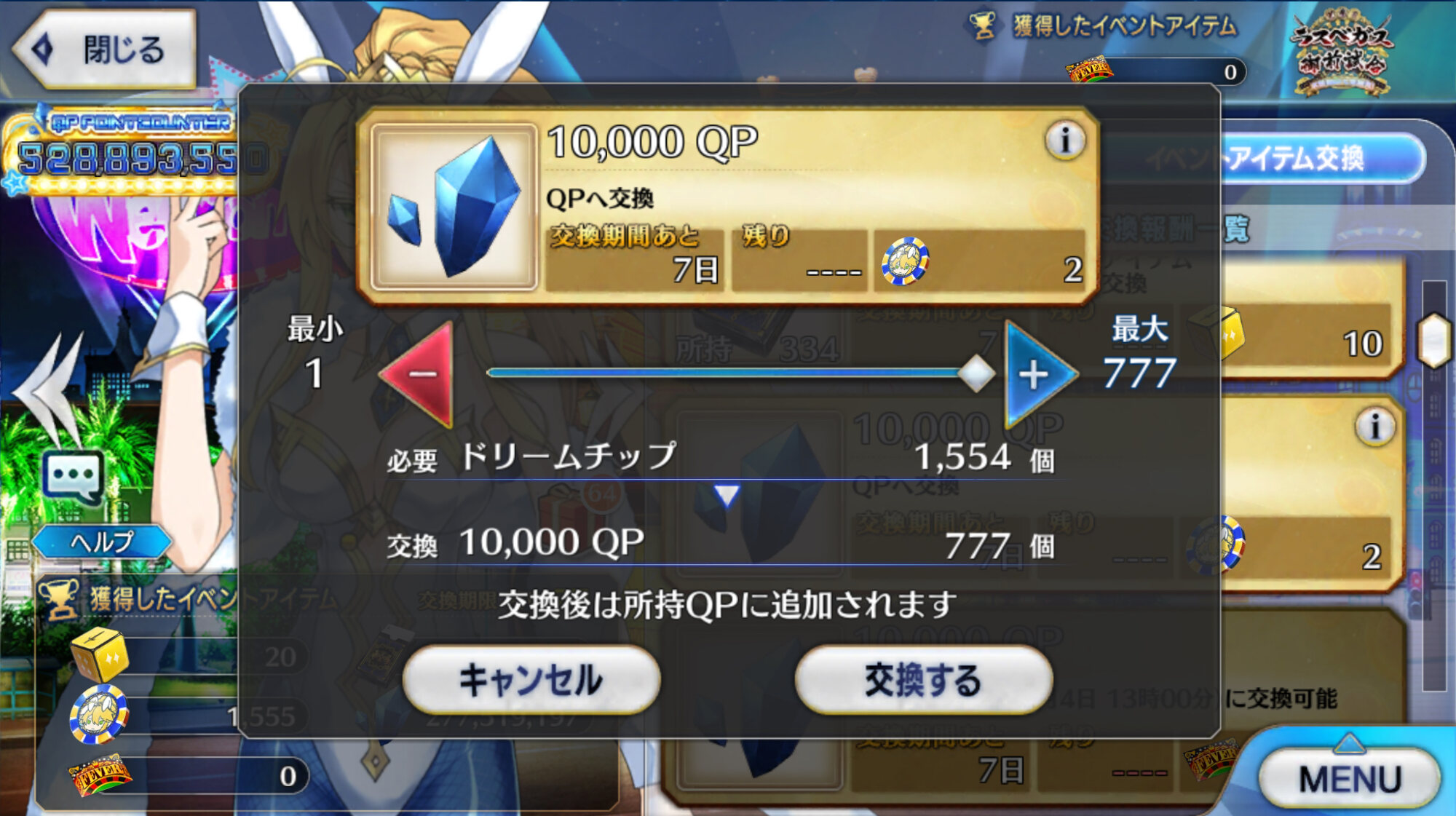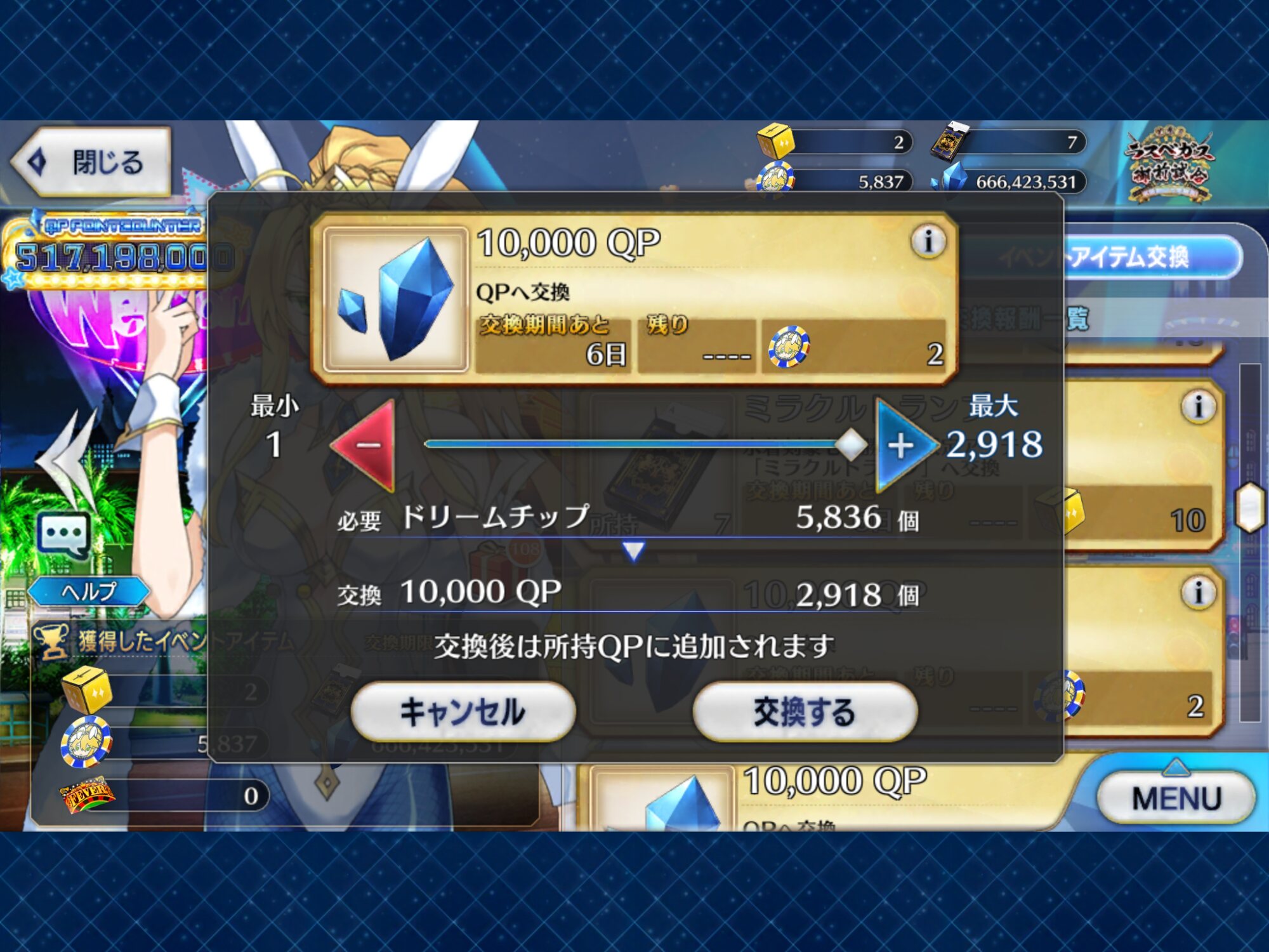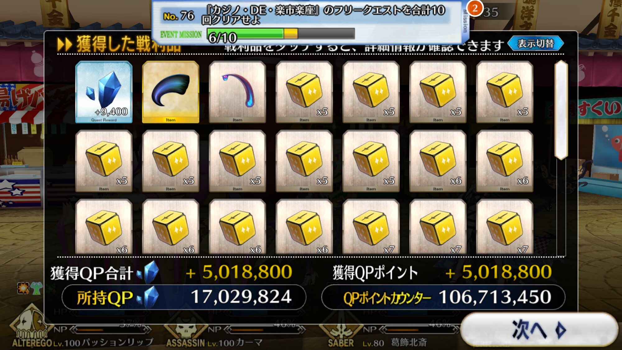 ミリオネアのフィーバーのおかげで楽にQP稼げてあっという間にノルマ達成したわ