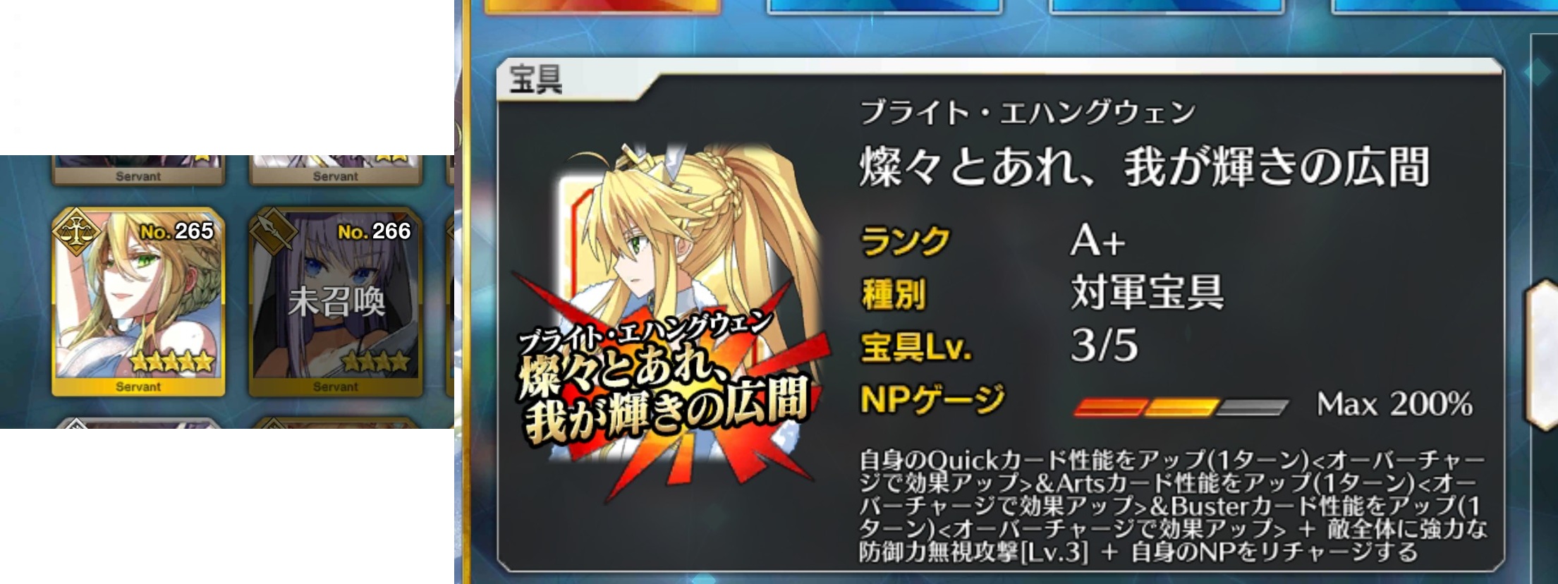 宝具ぶっぱ後オーバーゲージ相手にArtsで殴ればリチャージ完了だしね