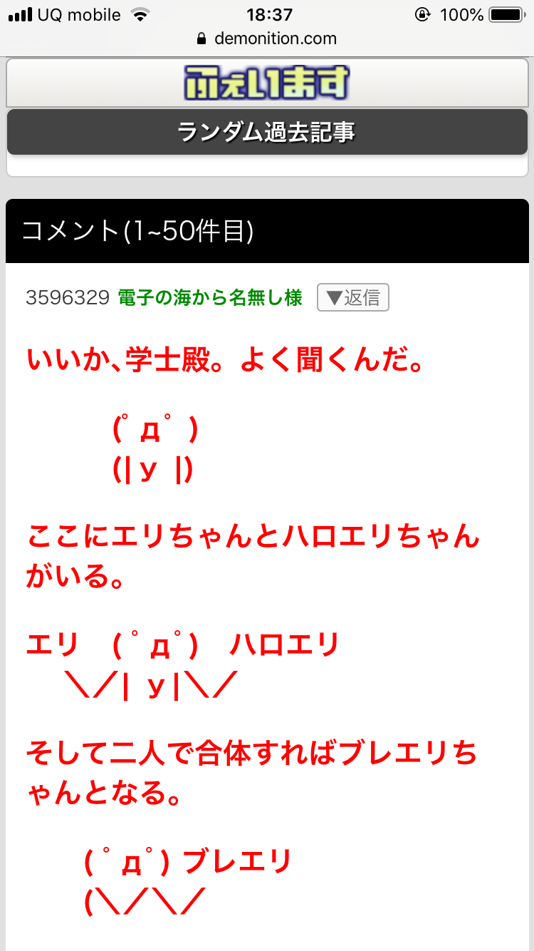 記事をうpしたのが43分、これは36分前のコメント