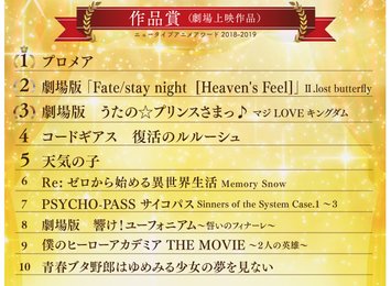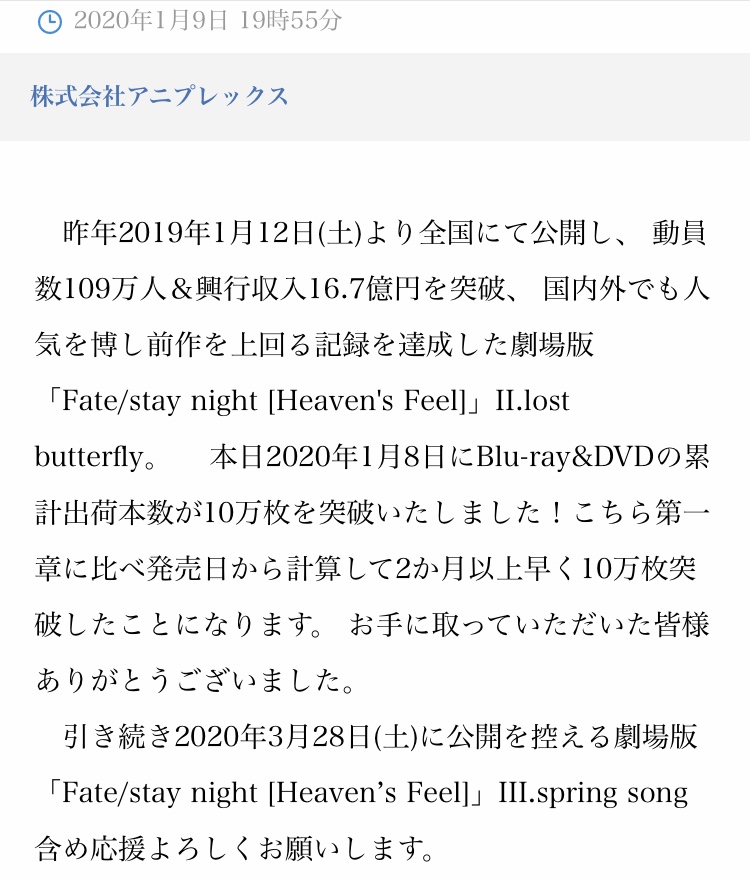 https://bbs.demonition.com/board/3499/<Fate/stay night[HF]>第2章BDが初週6万枚 前作に続きオリコン週間1位