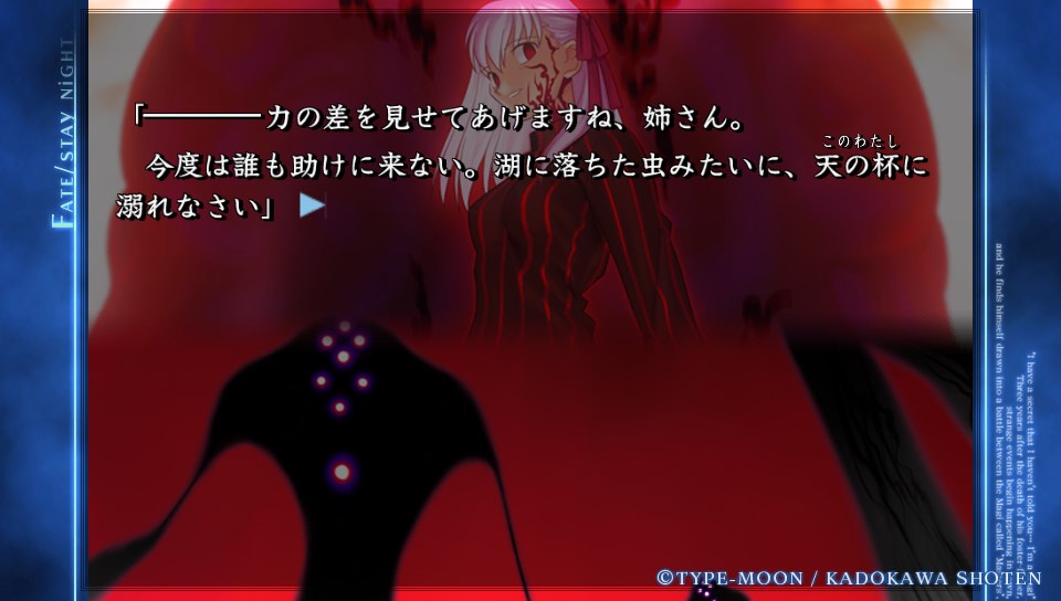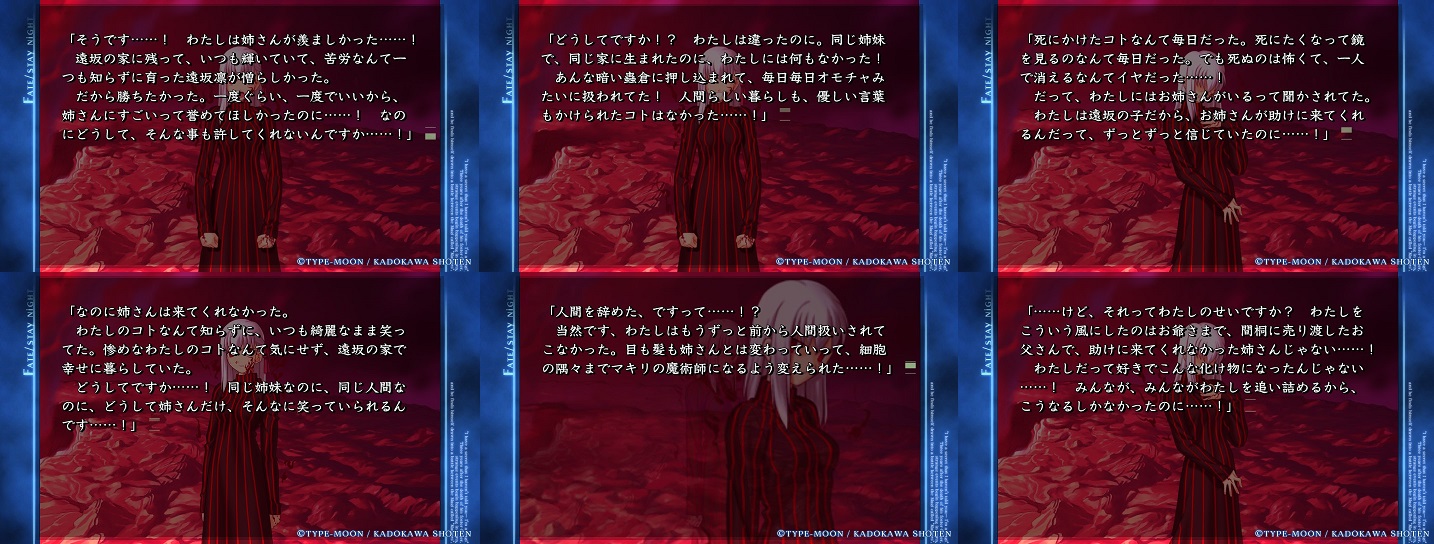 最後に士郎の前に立ちはだかったのは、同類だったものが、そこに行こうとしている事への嫉妬もあったのかな?今度は尺の長さで攻めることにしたのか、ノーマルエンド主義者