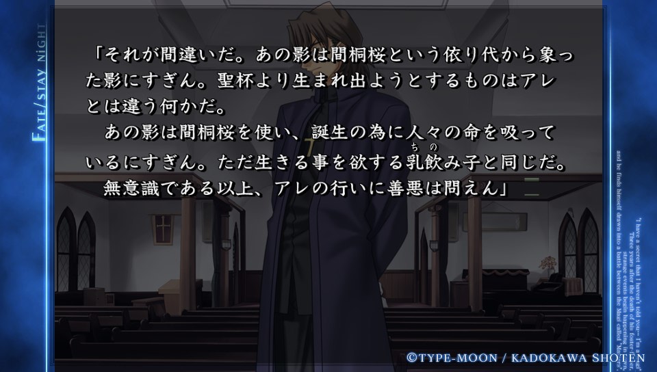 普段は評判の良い神父さんという面も持っているのが言峰だけど本当に士郎がみんな幸せにしようとすると必ず障害になる