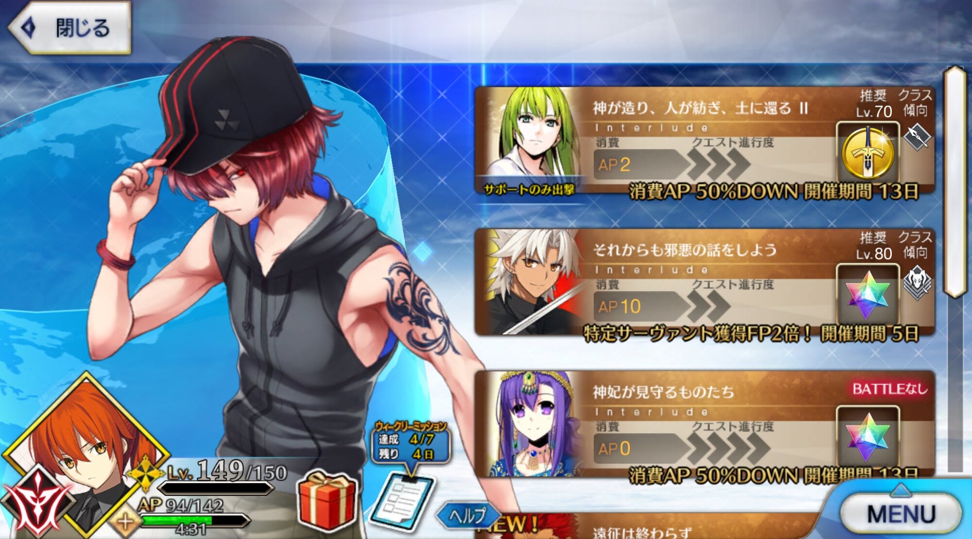 乗っ取られてる……幕間充実系サーヴァントの一人天草くんは所持未所持で結構印象が変わってくるよね