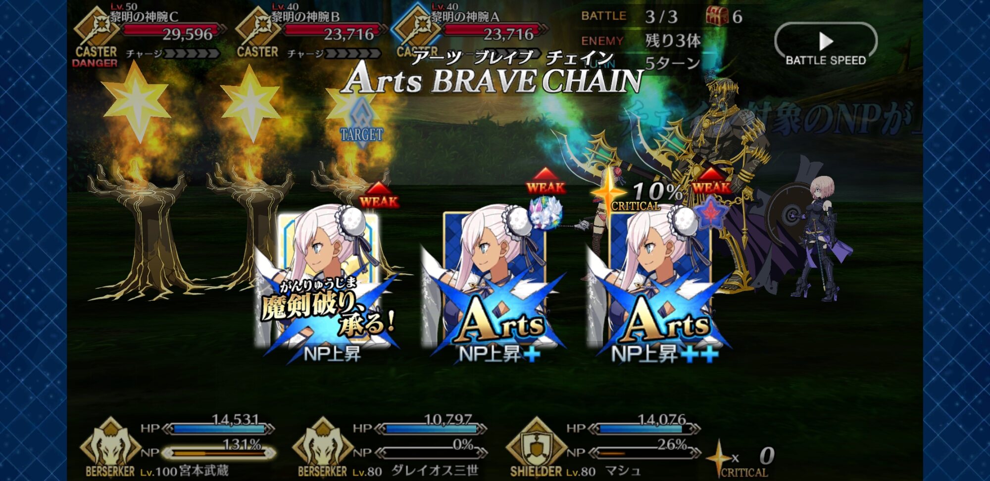 速攻で防バフしてあとはNPを貯めて宝具撃つ