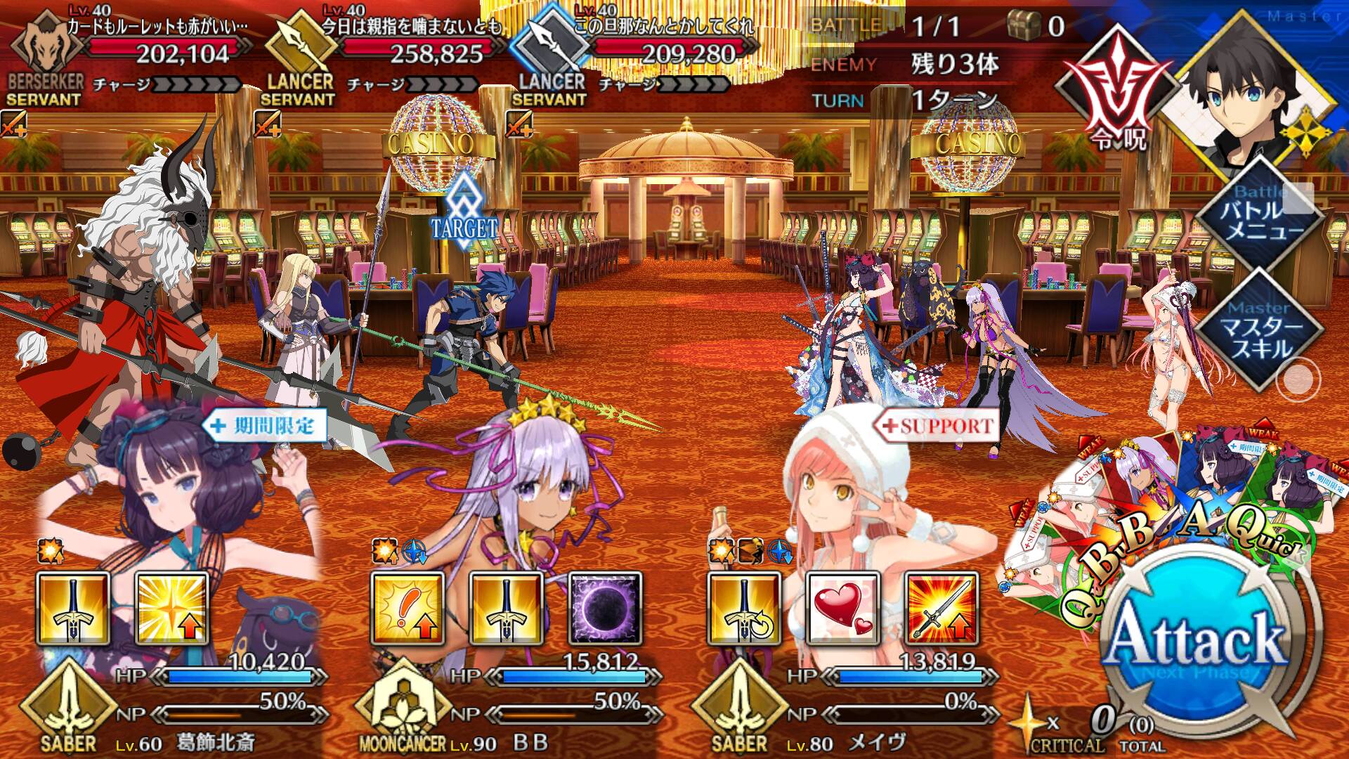 閻魔亭で別れてそのままソロ旅行にさせてしまったお詫びとしてキャットに案内されたバーサーカー専用のカジノで存分にバーサーカーとして遊ぶのかと思ったら他のバーサーカー組が壊した機材とか壁の掃除を率先してやっていたのはほんと紳士の鏡だったよ>>71