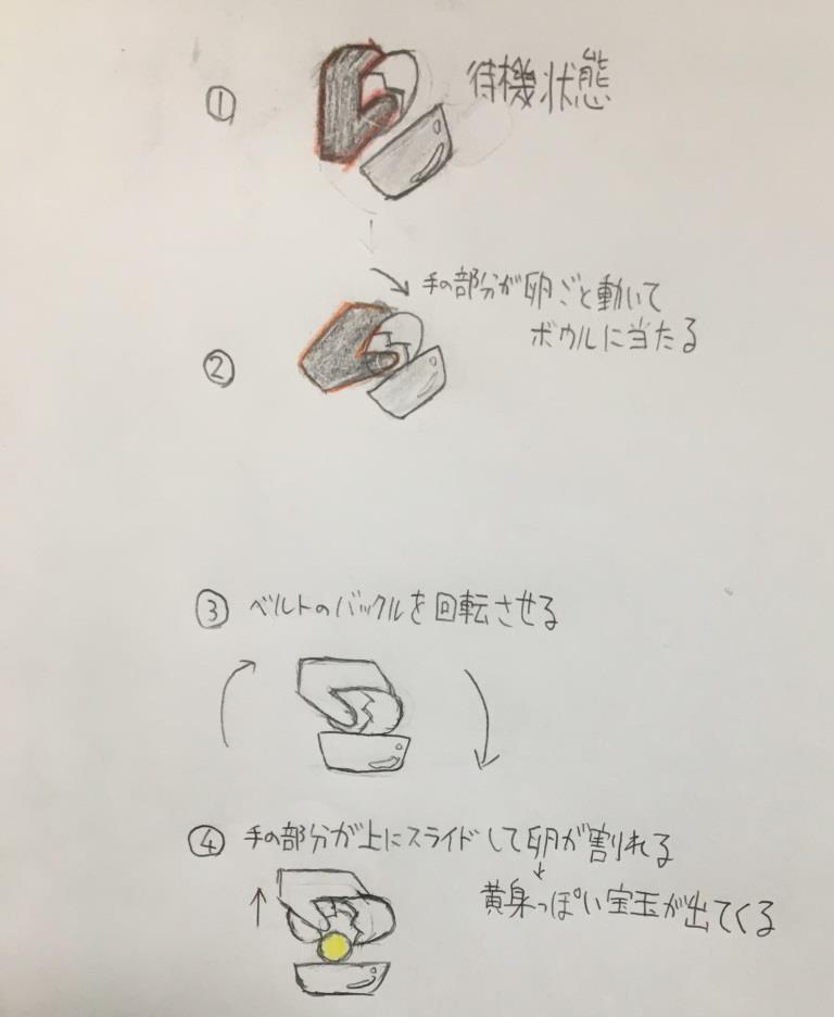 卵型変身アイテムをベルトに装着→マキシマムガシャット風に叩く→大きな卵出現、殻を壊し中の黄身を纏って変身って想像してるんだけど、どうだろうか。>>30